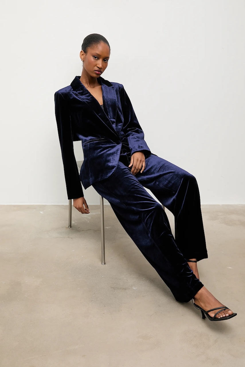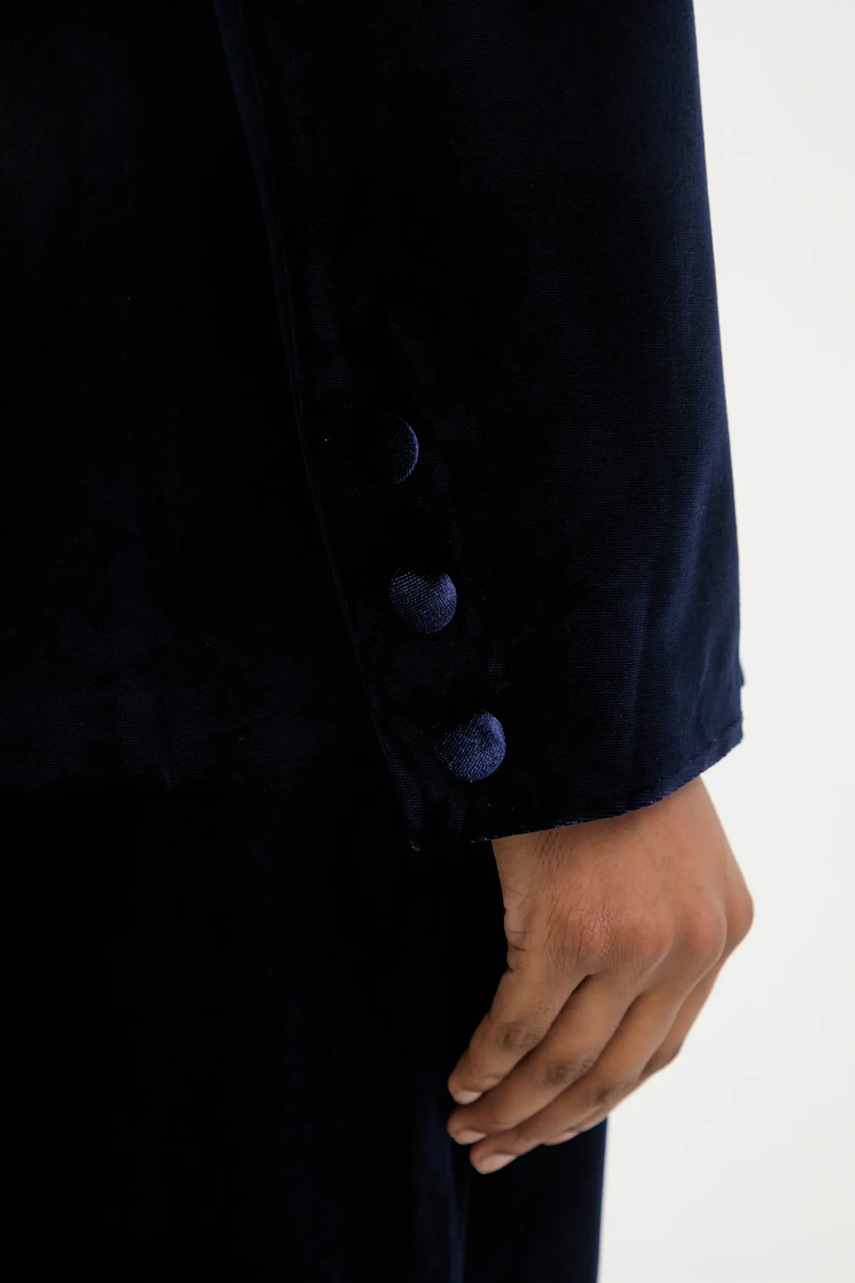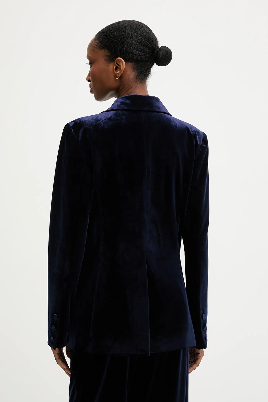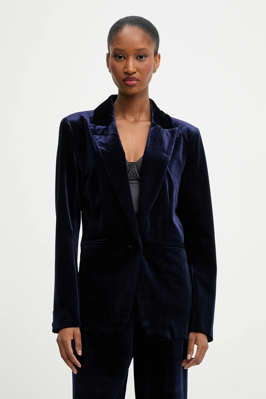 Answear.LAB marynarka welurowa kolor granatowy jednorzędowa gładka