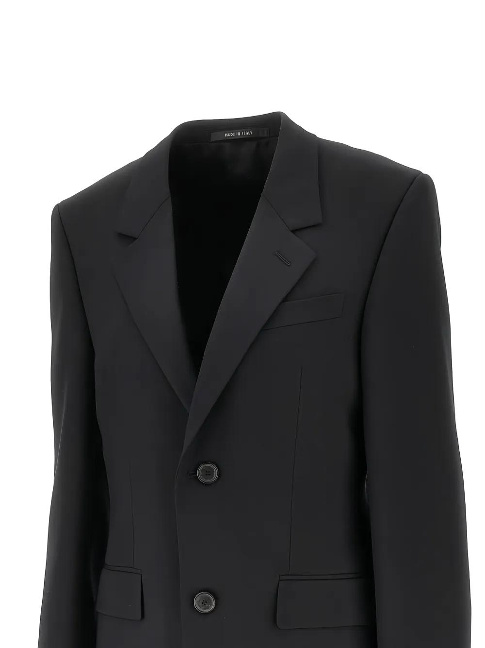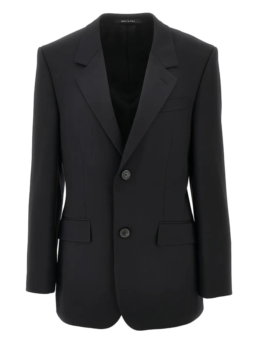 black button fastening notched lapels flap pockets single-breasted long sleeves
