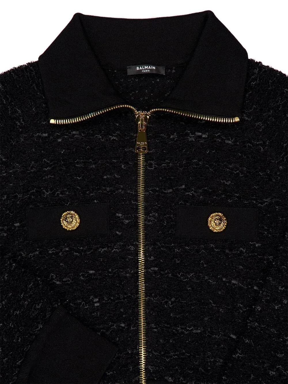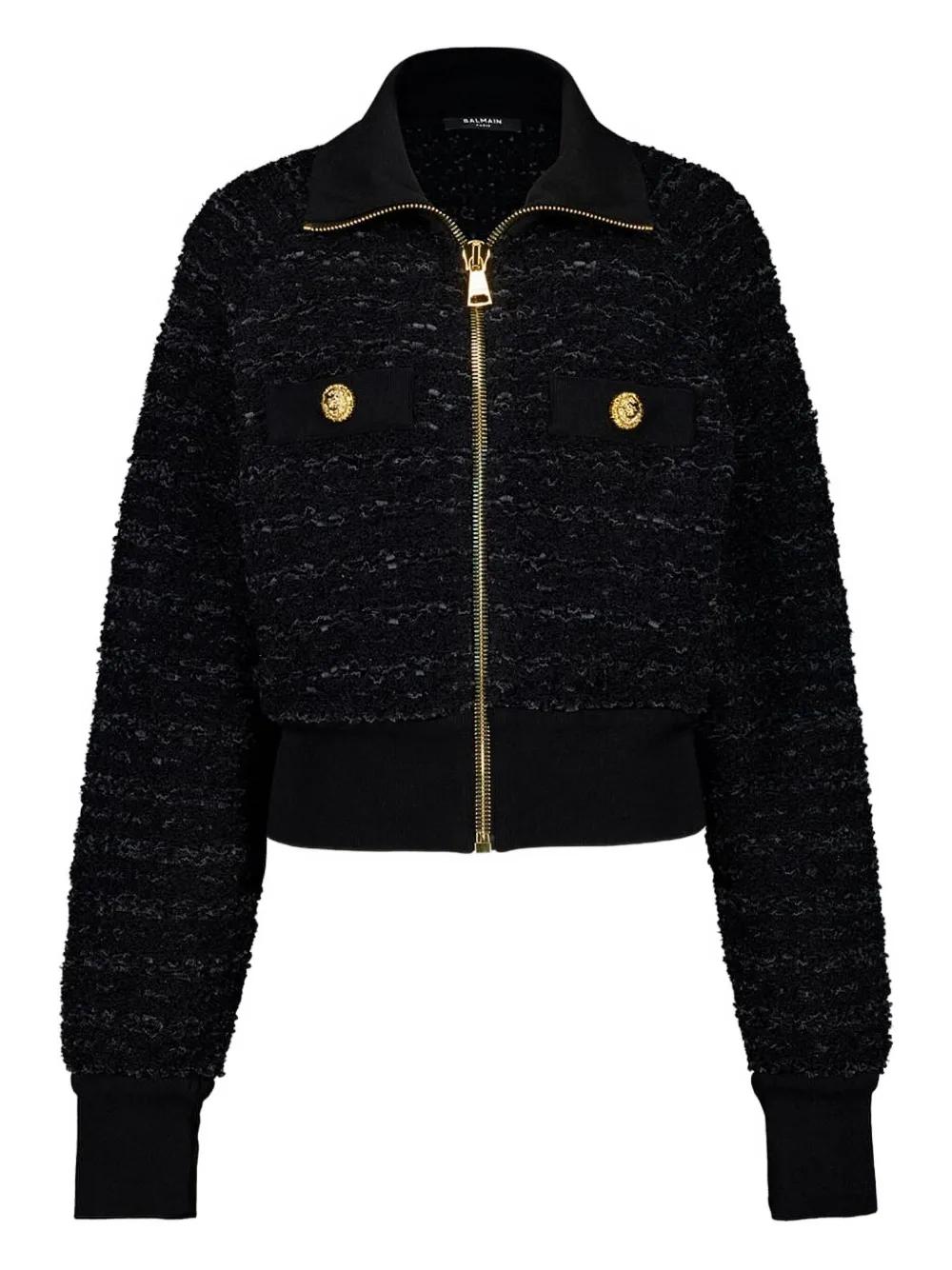 black gold-tone hardware zipped fastening two front pockets tweed effect