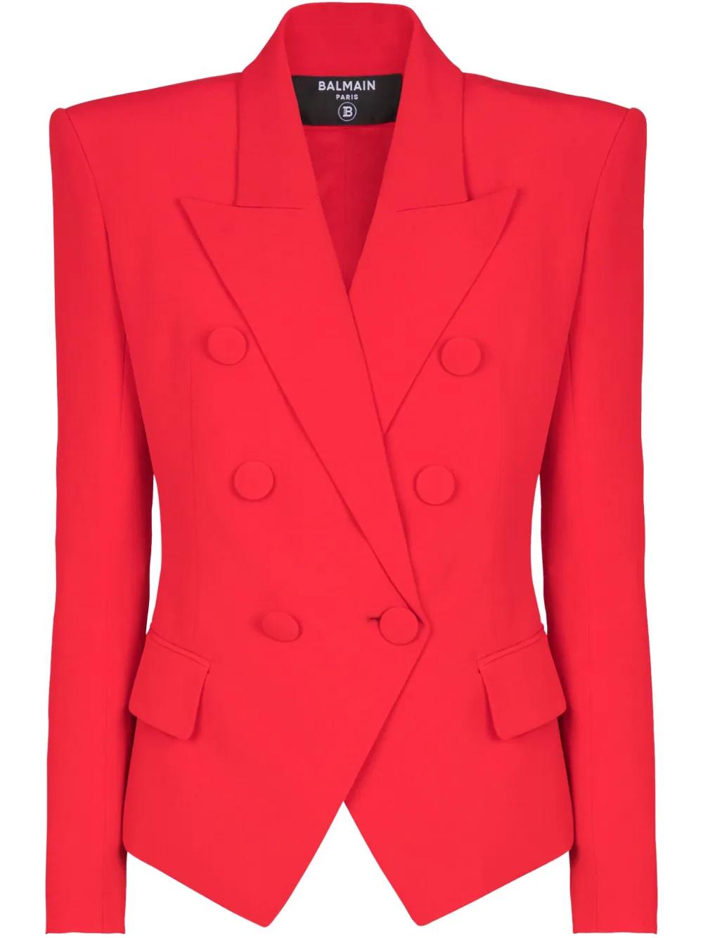 cardinal red double-breasted button fastening front flap pockets long sleeves buttoned-cuff sleeves