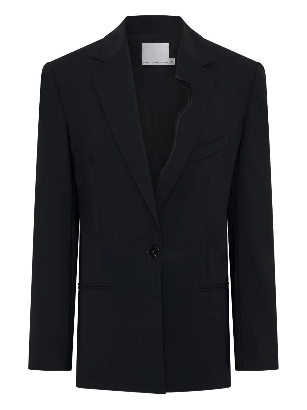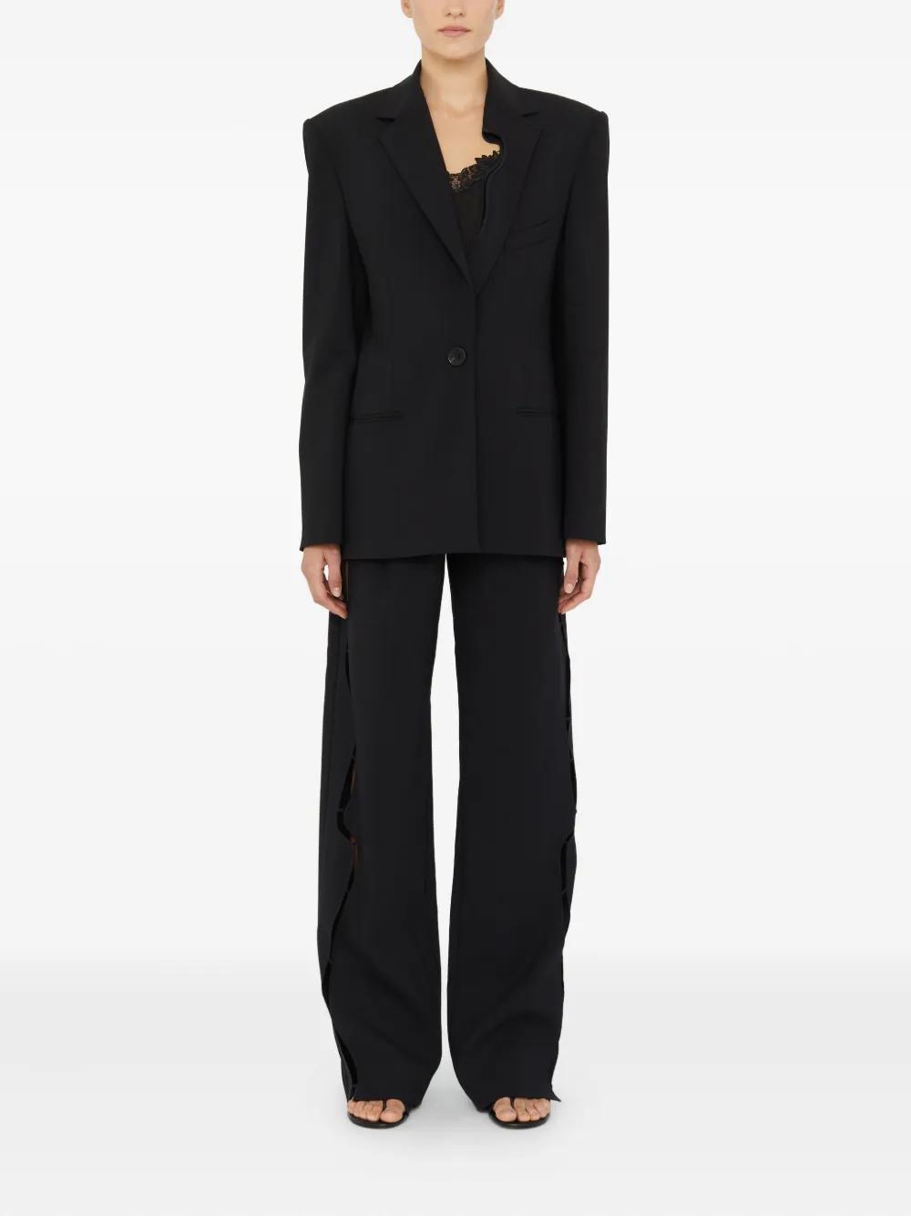 black notched lapel single-button fastening front flap pockets long sleeves wool