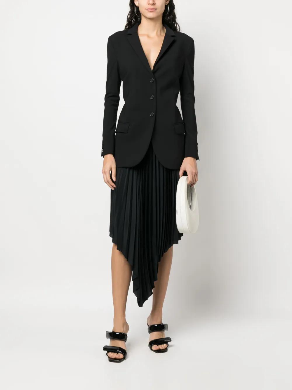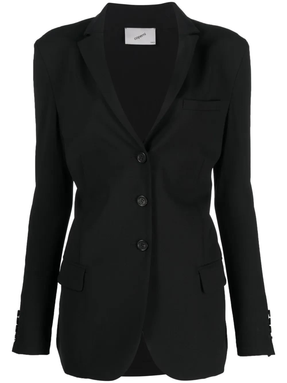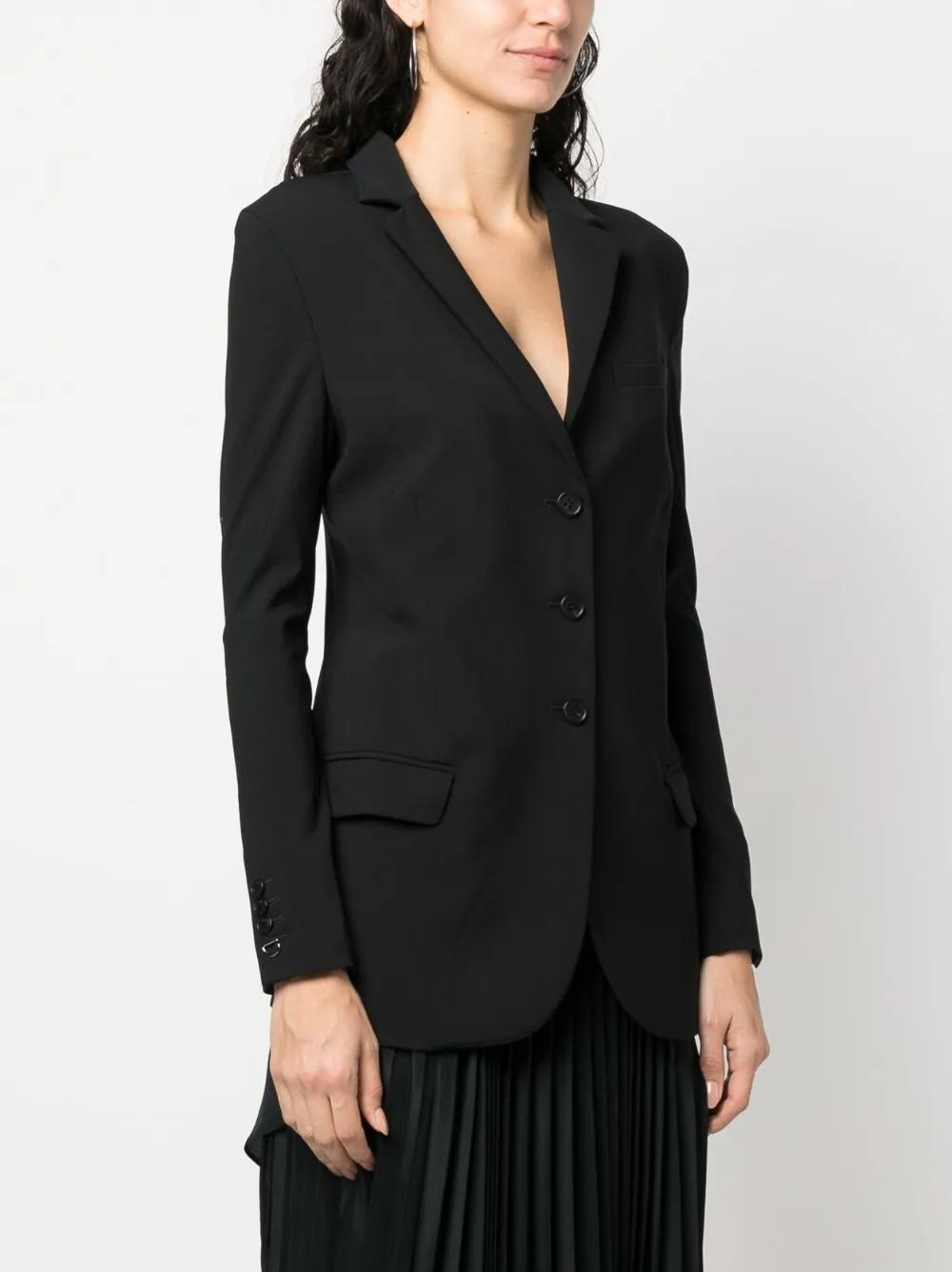 black logo plaque logo print to the rear notched lapels front button fastening chest welt pocket two front flap pockets buttoned-cuff sleeves long sleeves