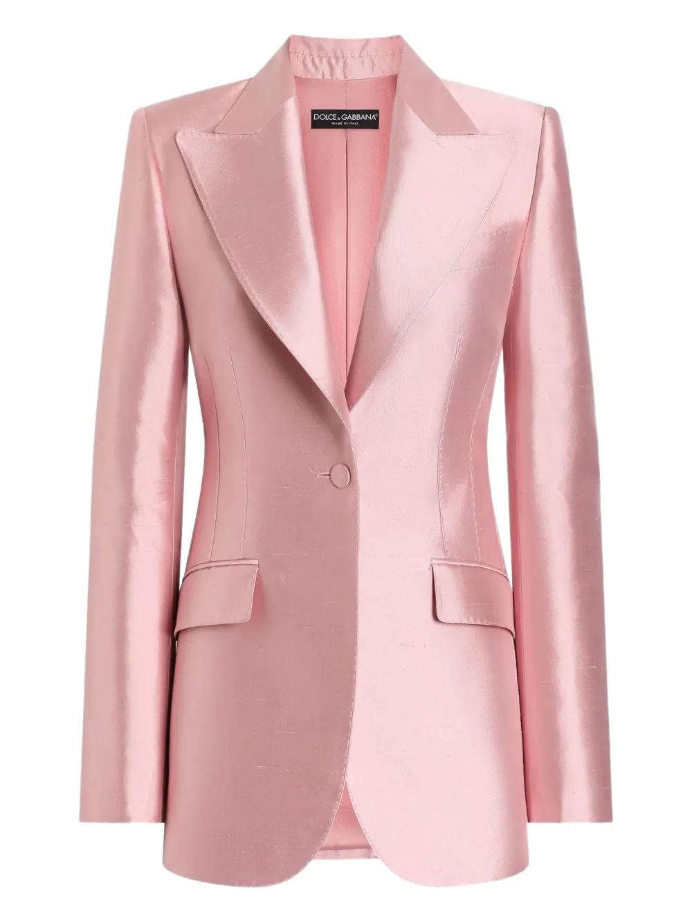 pink structured silhouette peaked lapels single-button fastening front flap pockets long sleeves