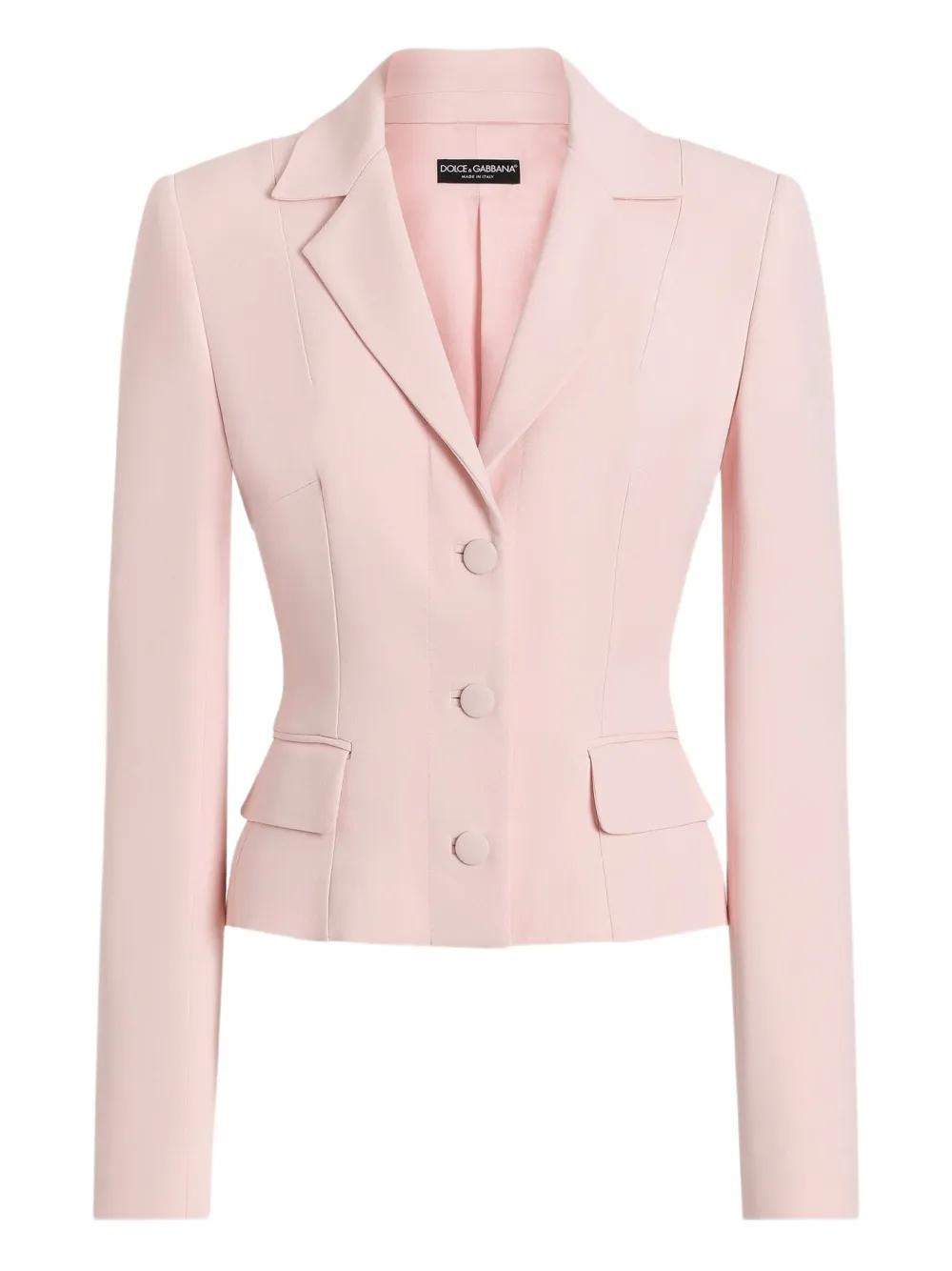 pink notched lapel single-breasted button closure front flap pockets long sleeves tailored fit
