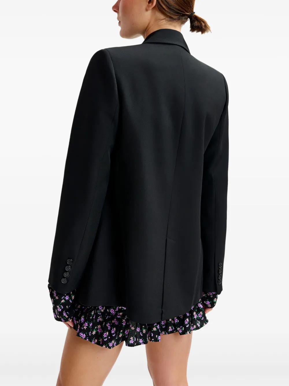 black double-breasted fastening padded shoulders flap pockets chest pocket