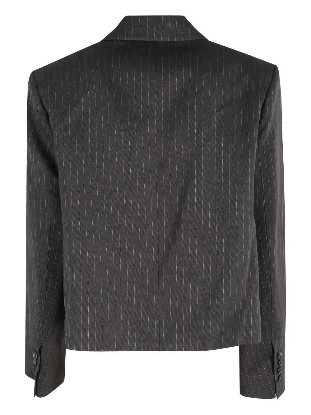 dark blue pinstripe pattern double-breasted button fastening notched lapels long sleeves