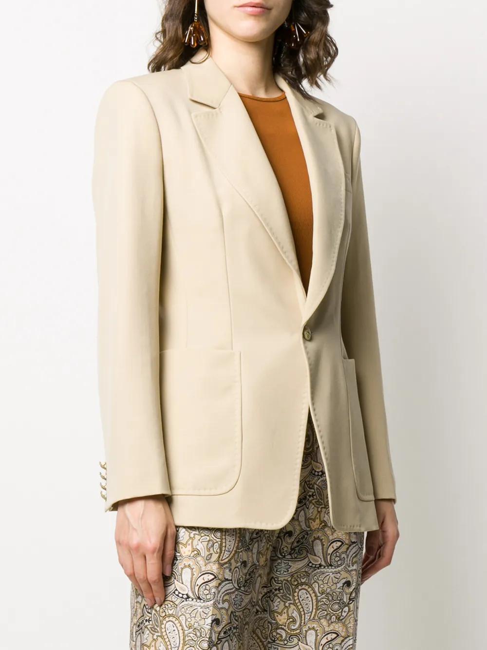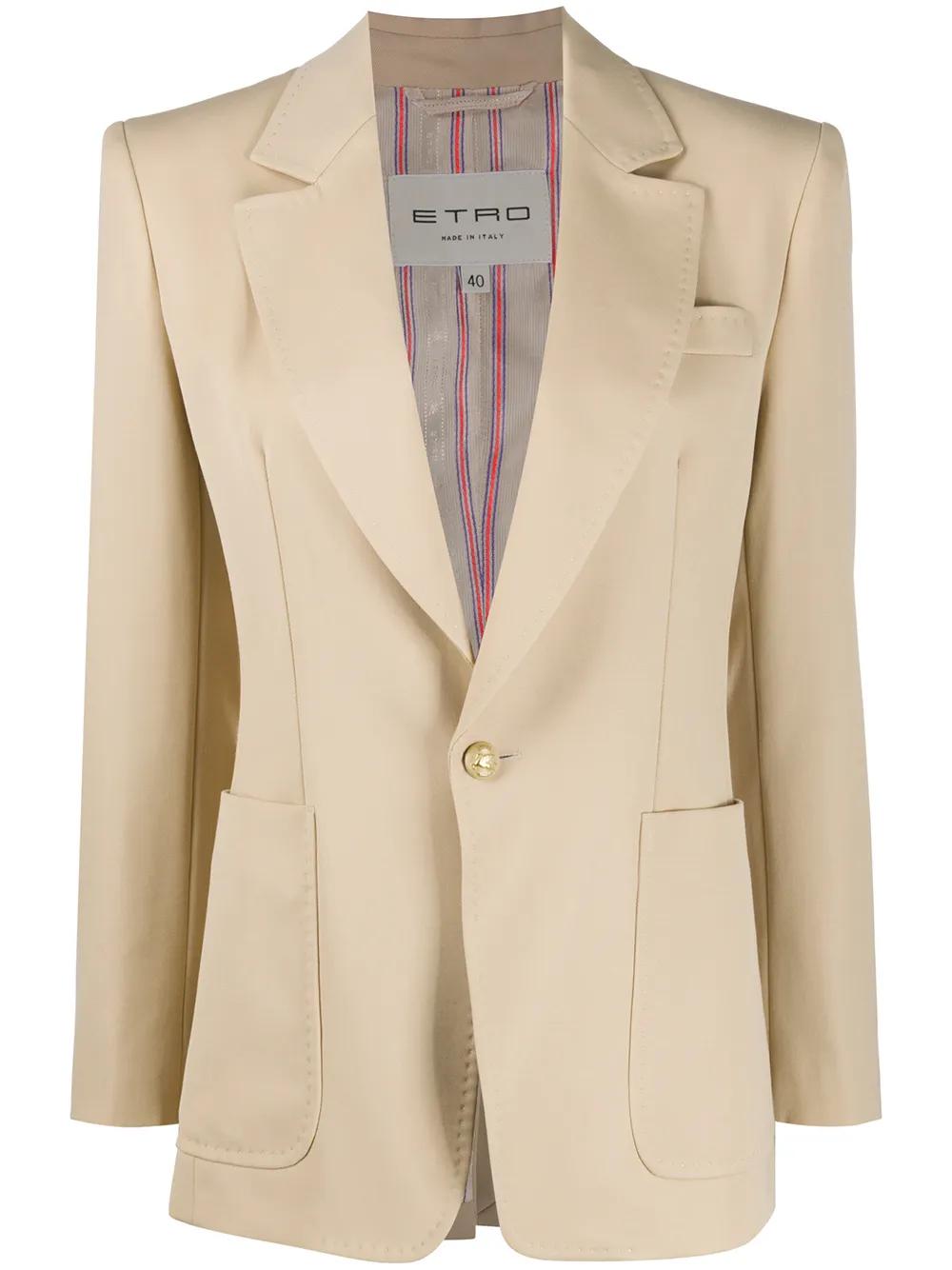 Light beige wool single-breasted tailored blazer from ETRO featuring notched lapels, a front button fastening, two front pockets, long sleeves, a rear central vent and a full lining.