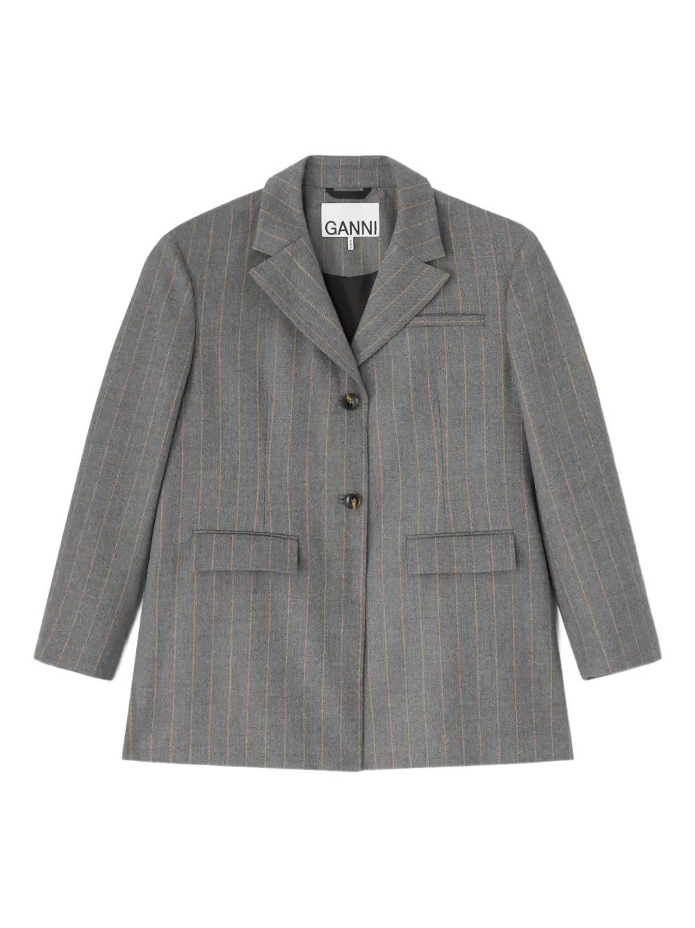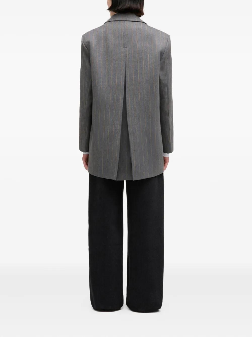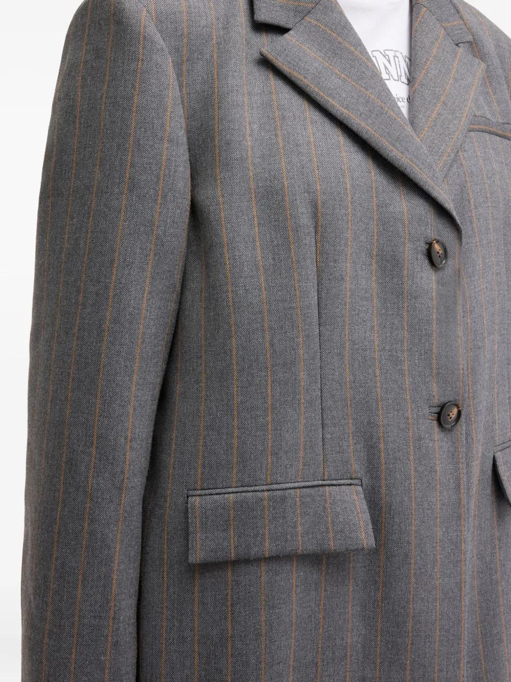 grey pinstripe notched lapels front button fastening front flap pockets back vent