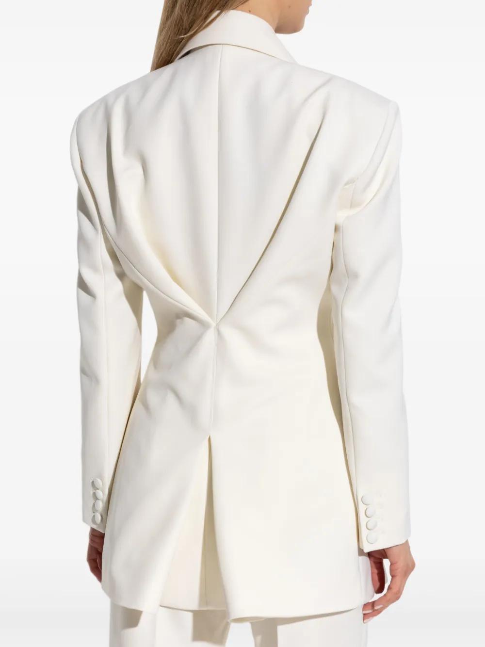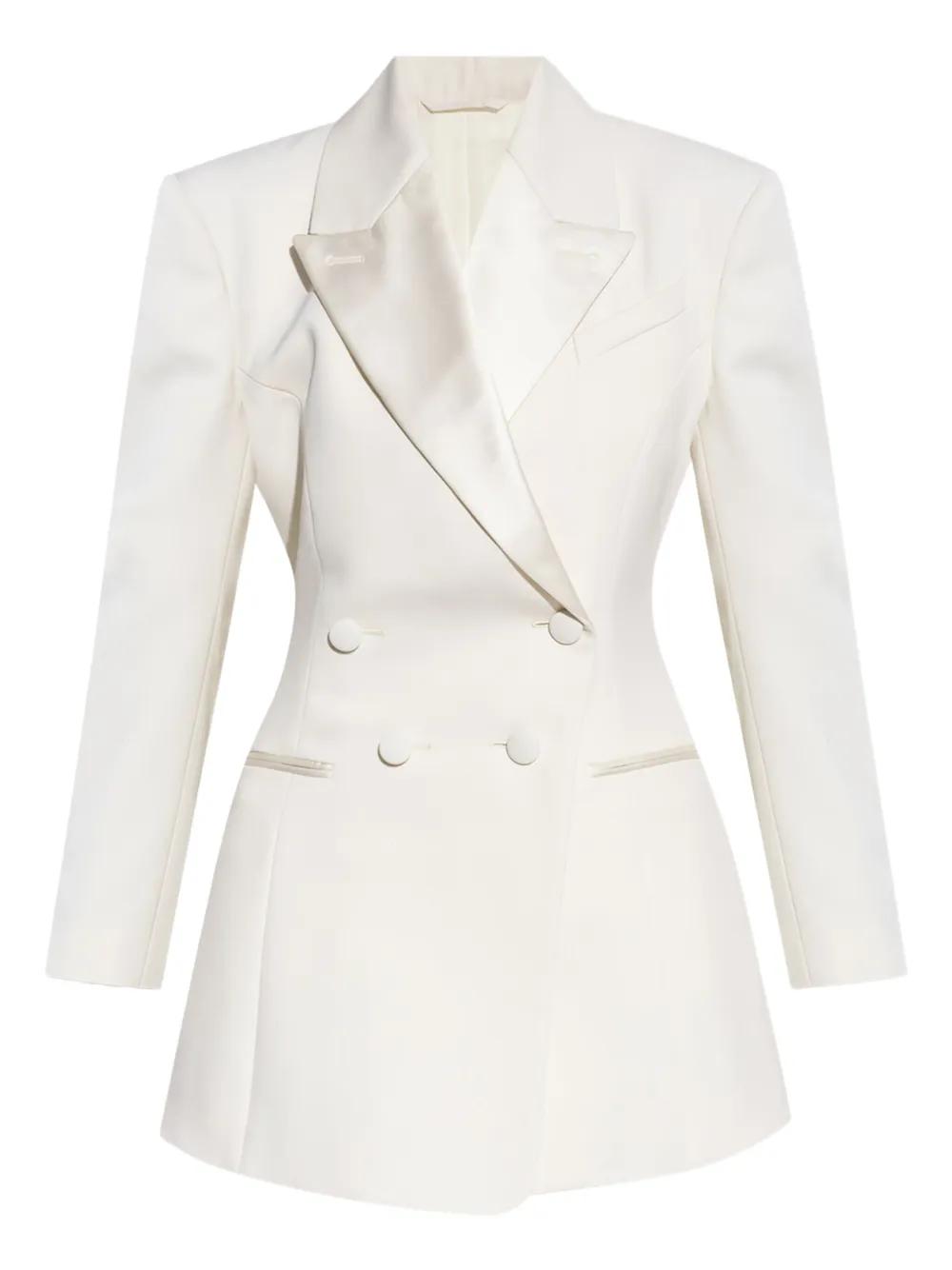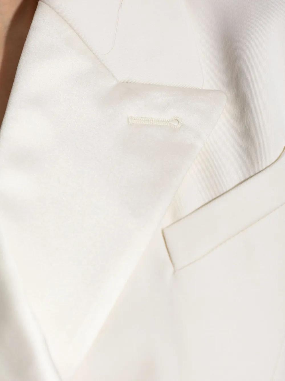 white double-breasted button fastening wide notch lapels jetted chest pocket two side welt pockets