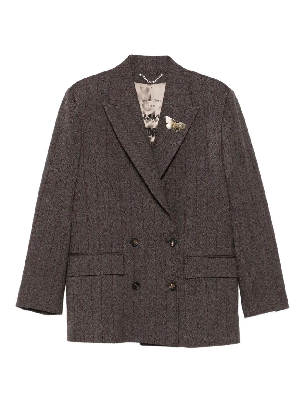 Golden Goose pinstripe butterfly-brooch blazer - Brown