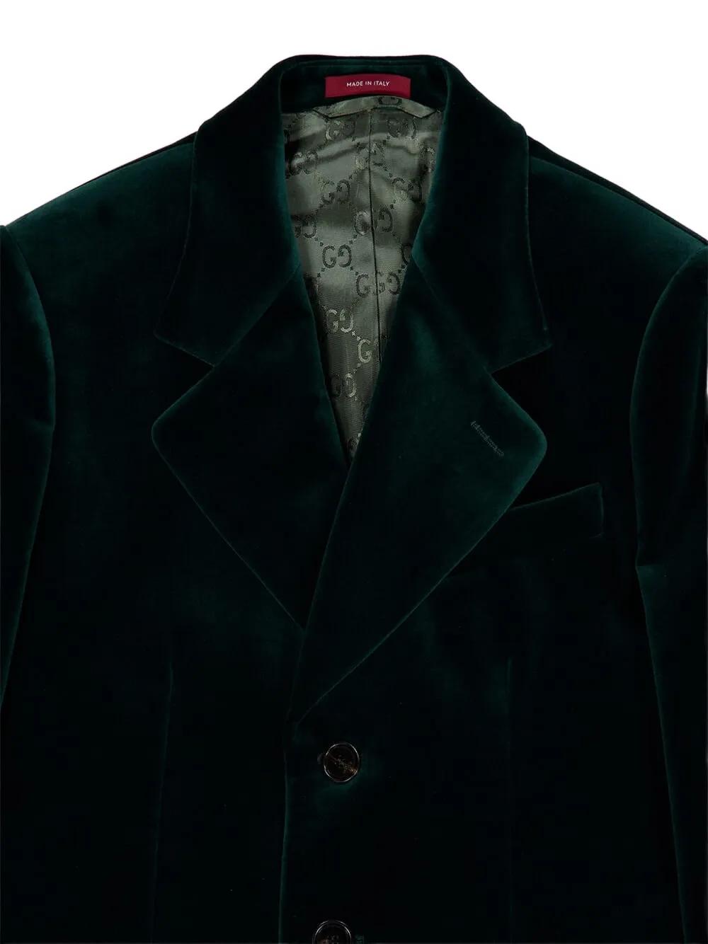 dark green button fastening velvet texture notched lapels long sleeves