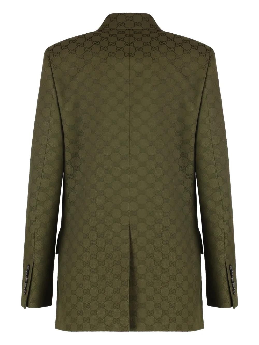 olive green GG monogram padded shoulders double-breasted closure flap pockets