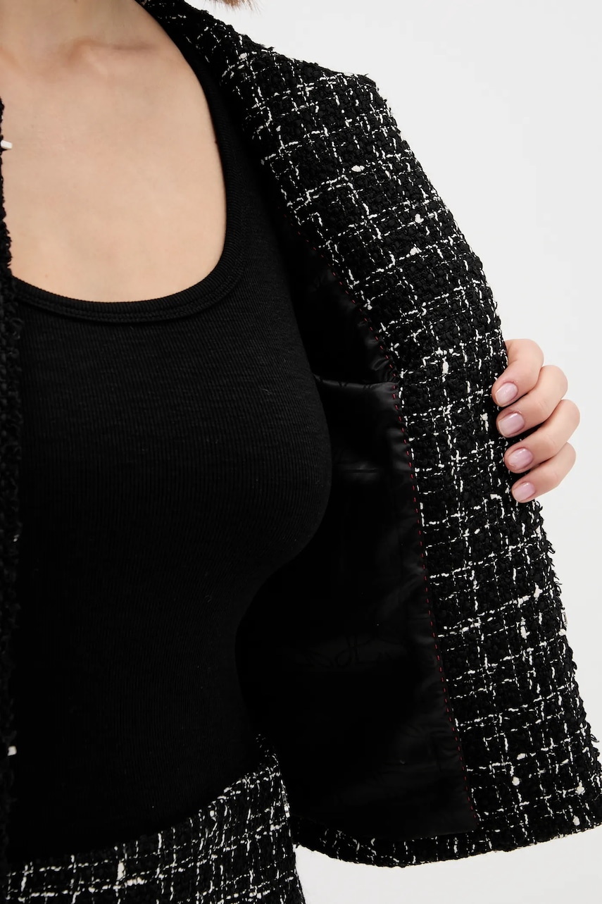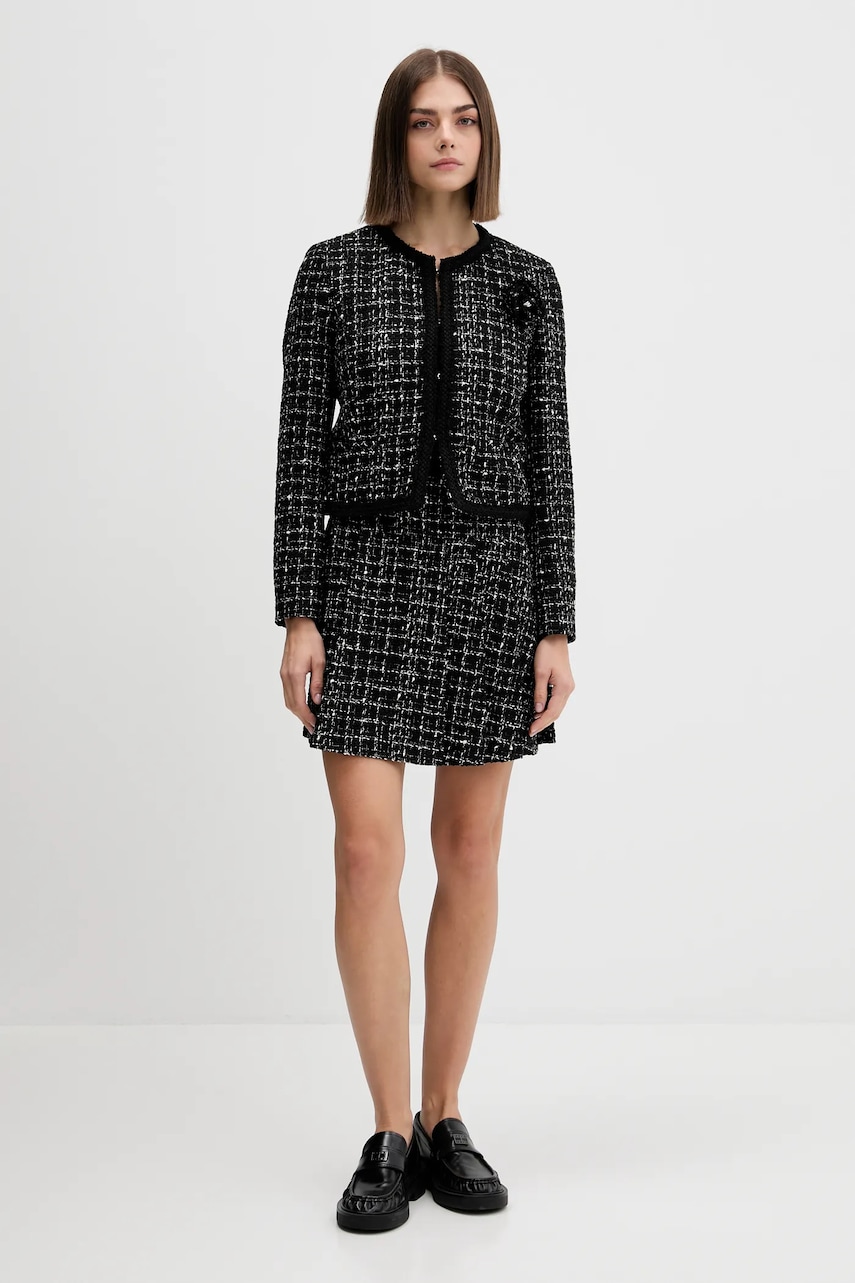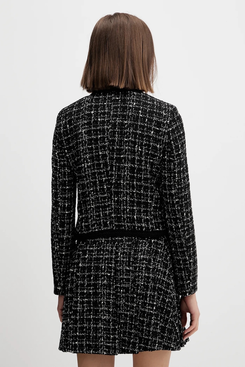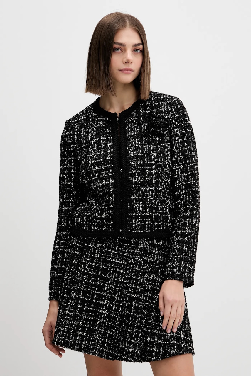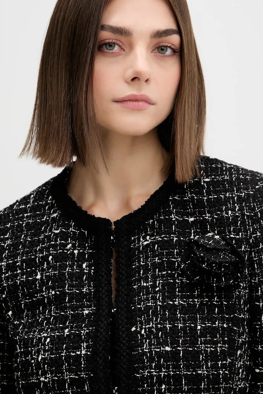 - Prosty, nie blokujący ruchów fason. - Wygodne zapięcie na haftki ułatwia zakładanie i zdejmowanie. - W ramiona wszyte poduszki. - Imitacja kieszeni z przodu. - Dodatkowa warstwa materiału w postaci podszewki. - Długość rękawa: 60,5 cm. - Długość: 50 cm. - Szerokość pod pachami: 48 cm. - Szerokość w ramionach: 38 cm. - Wymiary podane dla rozmiaru: 36.