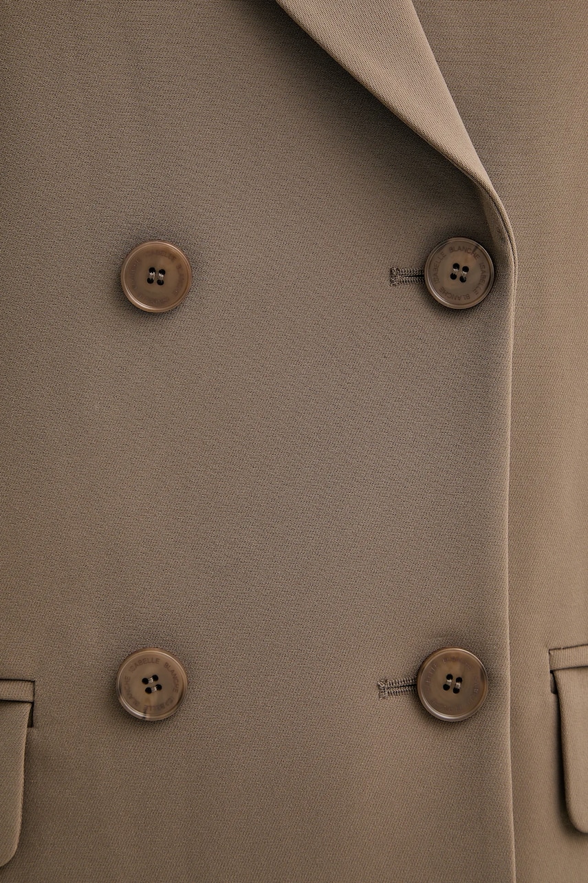 - Luźny krój zapewniający pełną swobodę ruchów. - Model na podszewce. - Dwurzędowe zapięcie na guziki. - W ramiona wszyte poduszki. - Model z ozdobnymi patkami. - Imitacja kieszeni na piersi. - Długość: 68 cm. - Długość rękawa: 58 cm. - Szerokość pod pachami: 49 cm. - Szerokość w ramionach: 47 cm. - Wymiary podane dla rozmiaru: S.