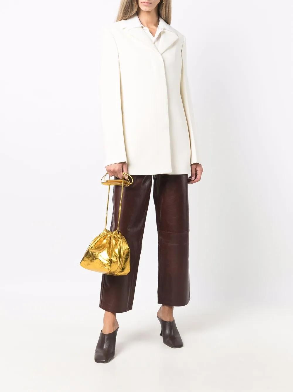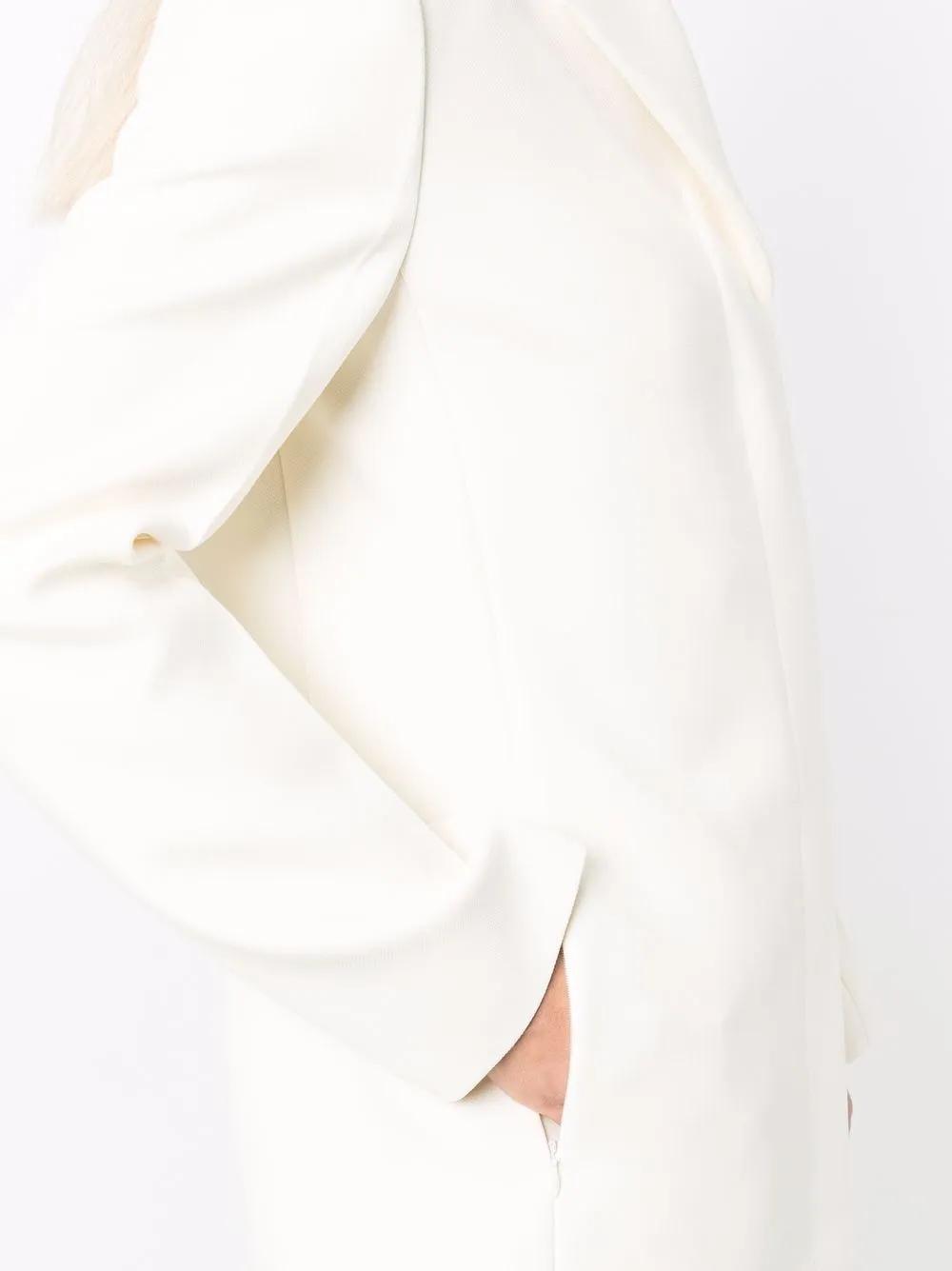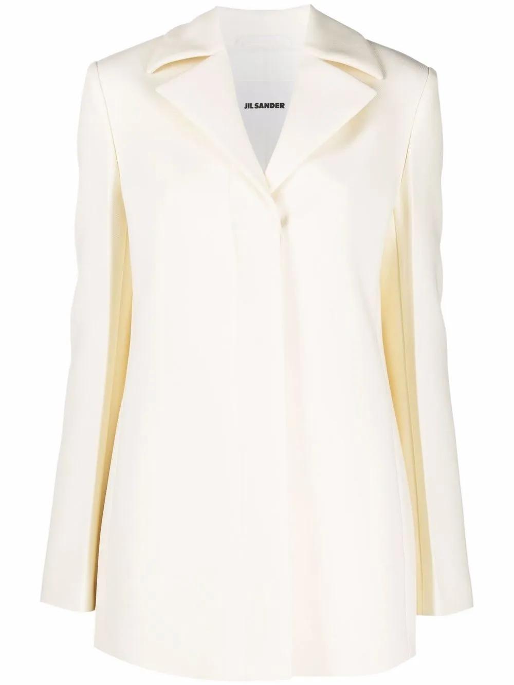 ivory virgin wool concealed front fastening long sleeves camp collar long sleeves