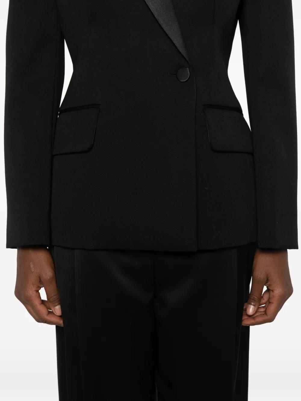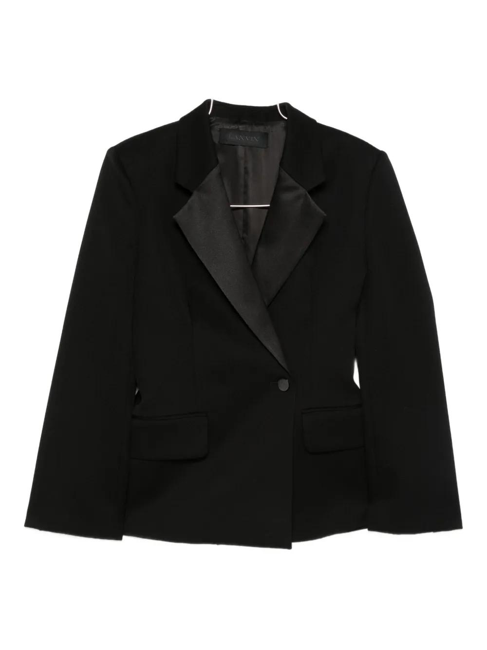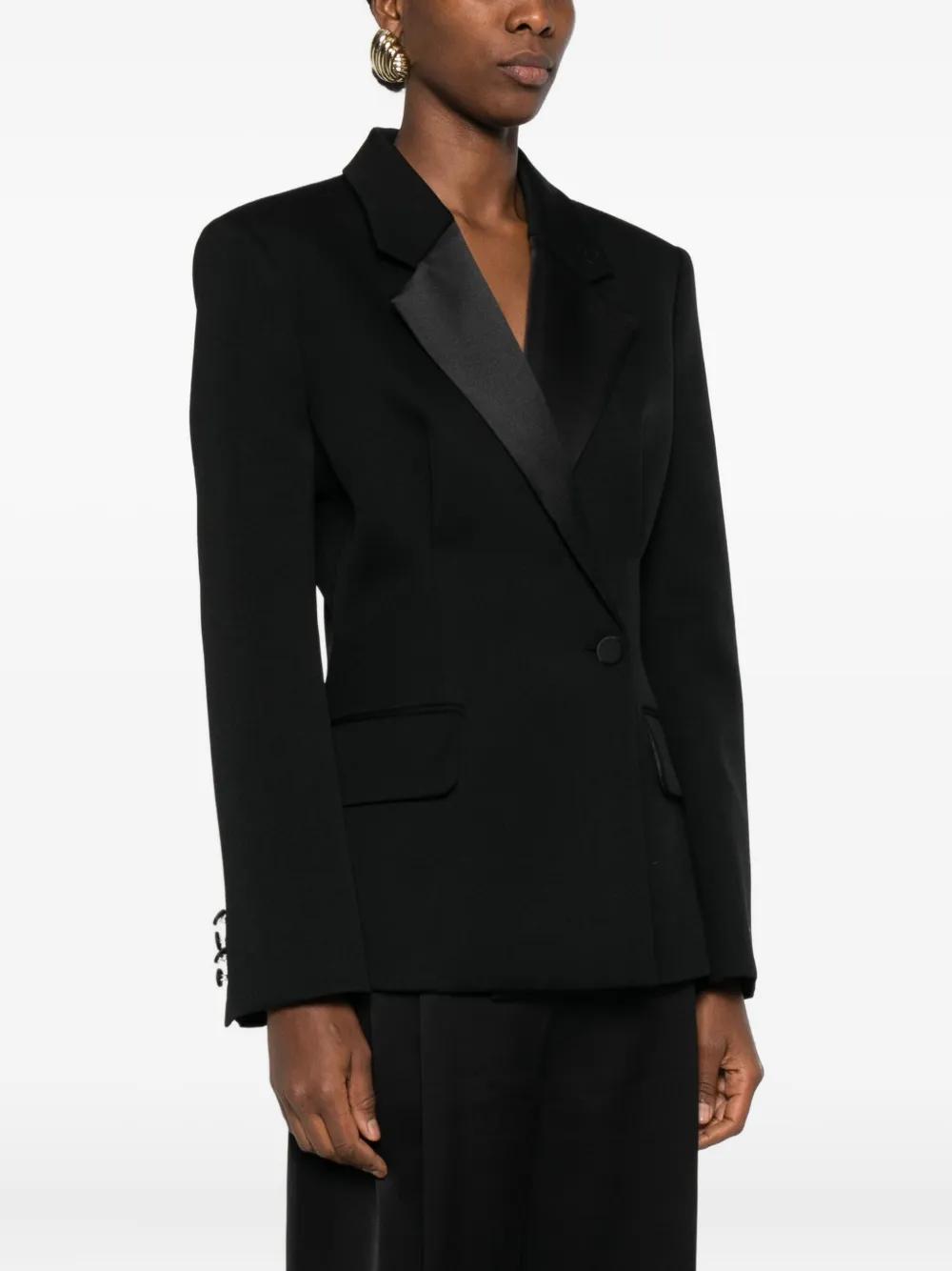 black notched lapel single-button fastening front flap pockets long sleeves wool