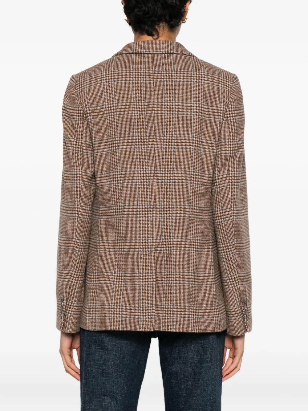 taupe check pattern button fastening notched lapels front flap pockets long sleeves