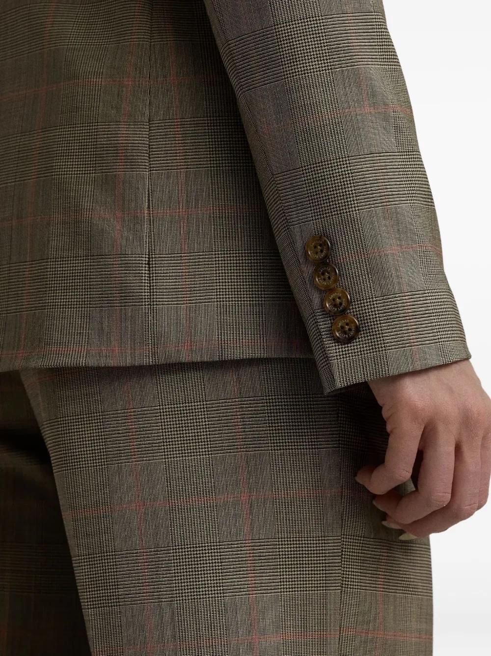 olive green checked pattern double-breasted button fastening classic collar flap pockets
