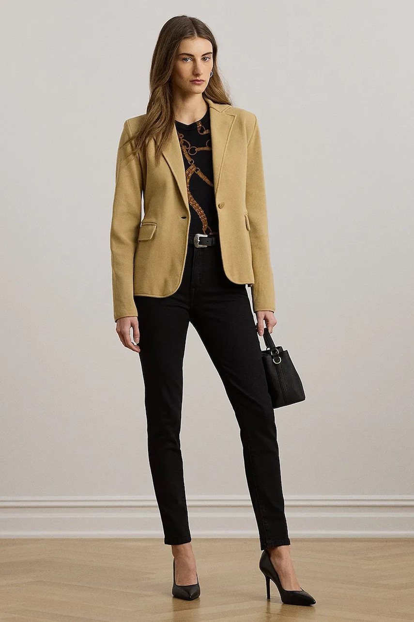 Lauren Ralph Lauren marynarka kolor beżowy jednorzędowa gładka 200971364