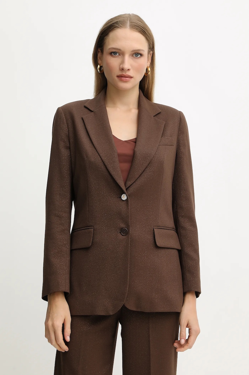 Liu Jo marynarka kolor brązowy jednorzędowa gładka MF5158 T159A