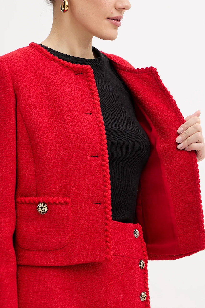 Luisa Spagnoli marynarka z dodatkiem wełny kolor czerwony jednorzędowa gładka 542705