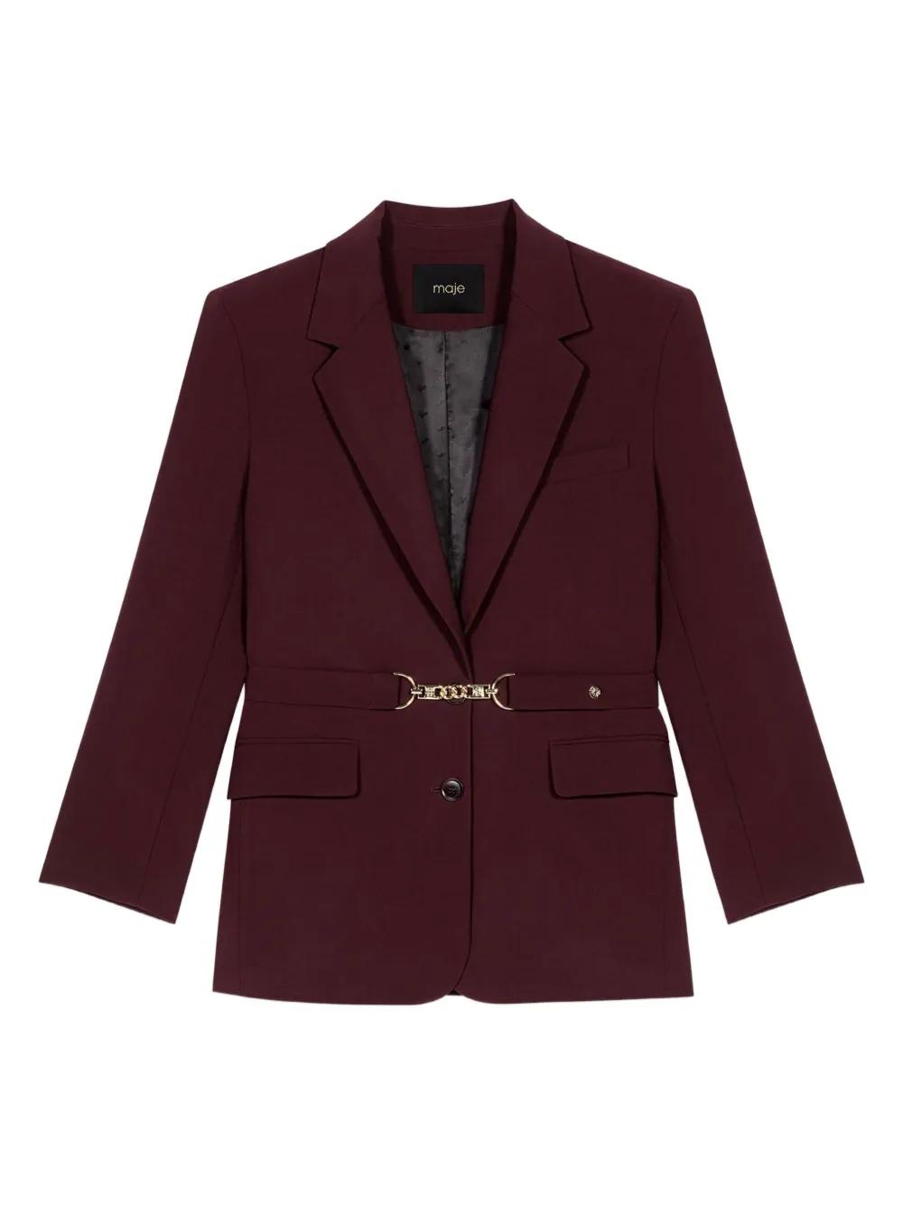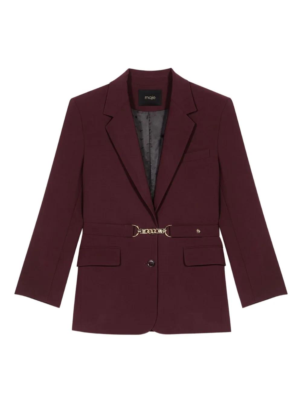 burgundy red chain detail single button fastening flap pockets long sleeves notched lapels