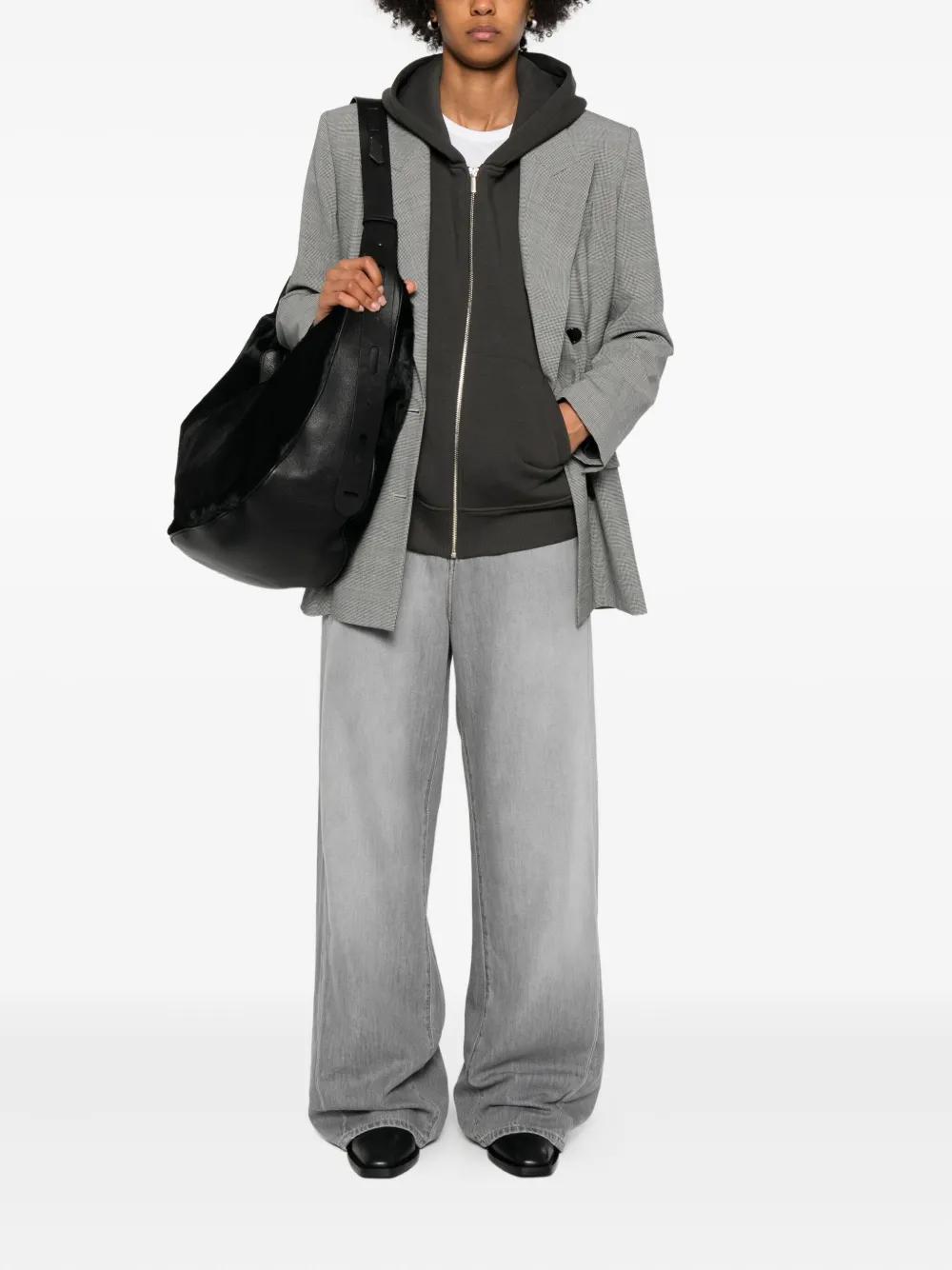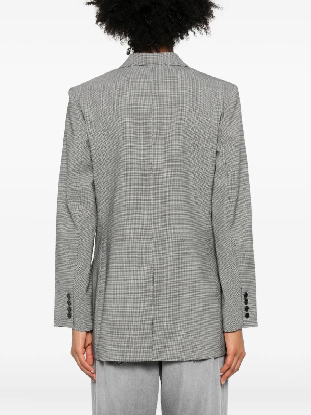 grey houndstooth check pattern double-breasted closure four buttons notched lapels long sleeves