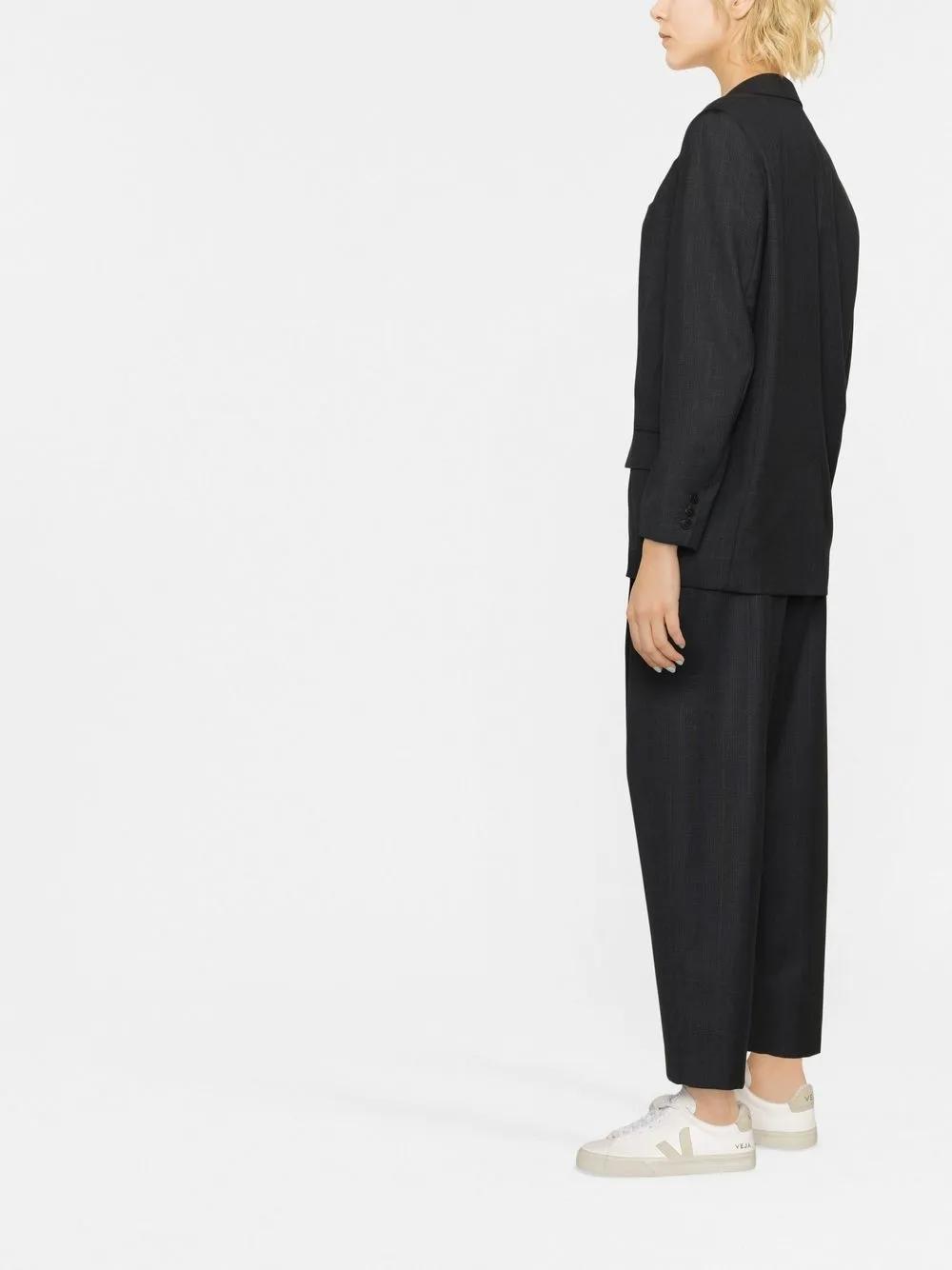 anthracite grey virgin wool notched lapels chest welt pocket front button fastening long sleeves two side flap pockets check pattern