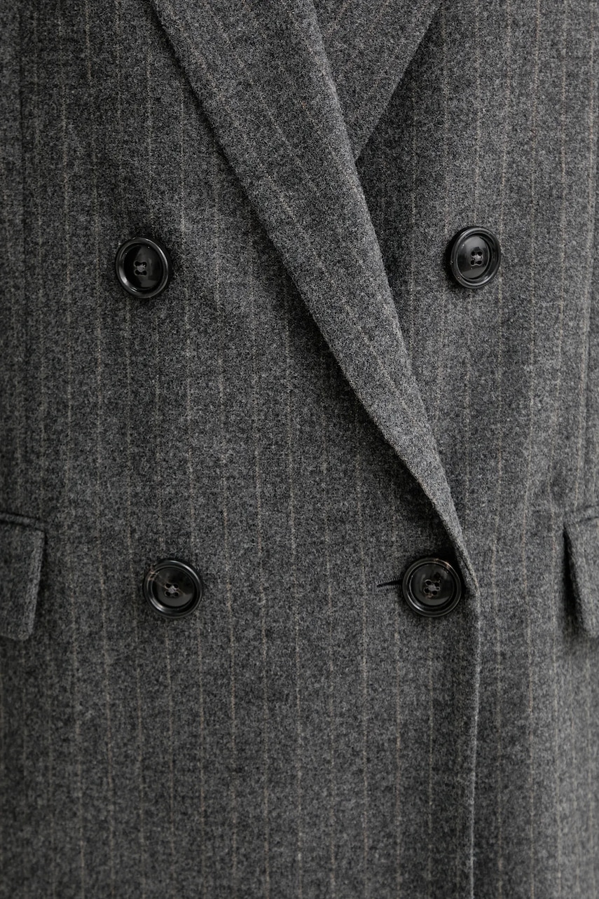 - Produkt posiada certyfikat zgodny z Responsible Wool Standard (RWS). Materiał, z którego został wykonany zawiera wełnę pochodzącą z gospodarstw, które są niezależnie certyfikowane w zakresie dobrostanu zwierząt i wymagań dotyczących gospodarowania gruntami. - Prosty, nie blokujący ruchów fason. - Dwurzędowe zapięcie na guziki. - Klasyczne klapy. - Model na podszewce. - Model z kieszeniami, ozdobionymi patkami. - Długość rękawa: 61 cm. - Długość: 70 cm. - Szerokość pod pachami: 53 cm. - Szerokość w ramionach: 43 cm. - Wymiary podane dla rozmiaru: 36.
