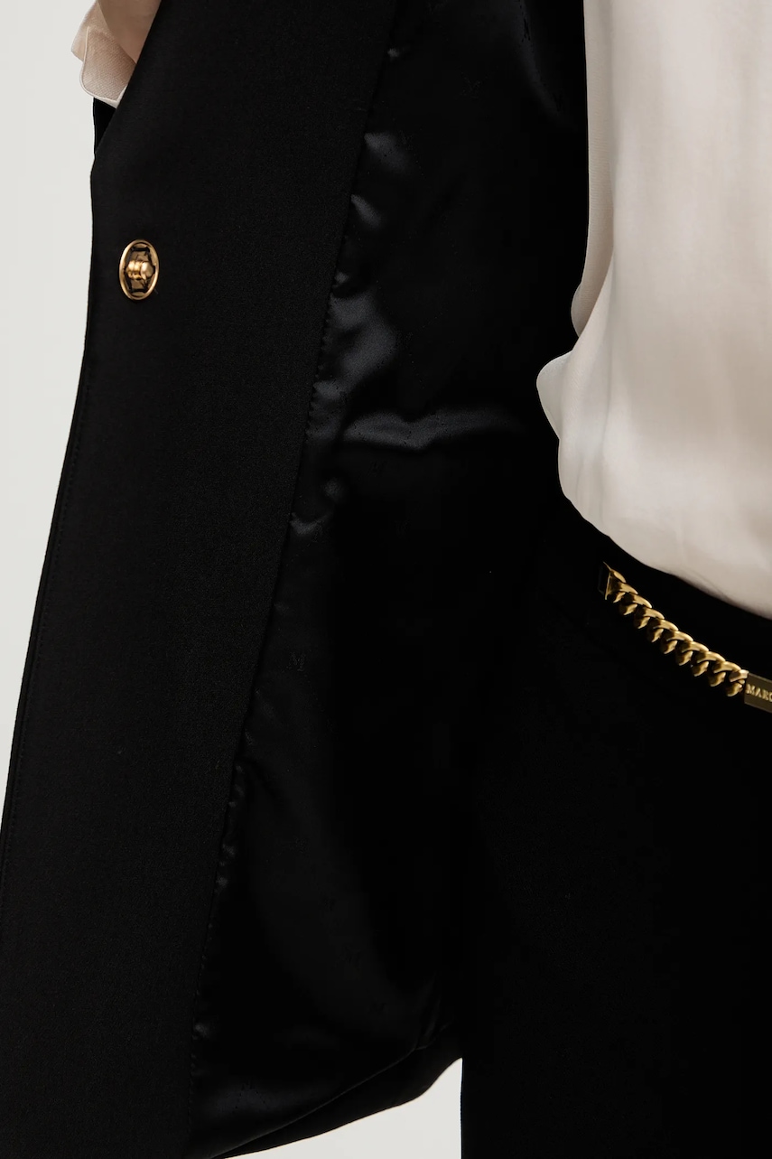 - Prosty, nie blokujący ruchów fason. - Model na podszewce. - W ramiona wszyte poduszki. - Zapięcie na zatrzask. - Model z kieszeniami, ozdobionymi patkami. - Dołączony tekstylny pasek. - Długość rękawa: 61 cm. - Długość: 72 cm. - Szerokość pod pachami: 43 cm. - Wymiary podane dla rozmiaru: 36.