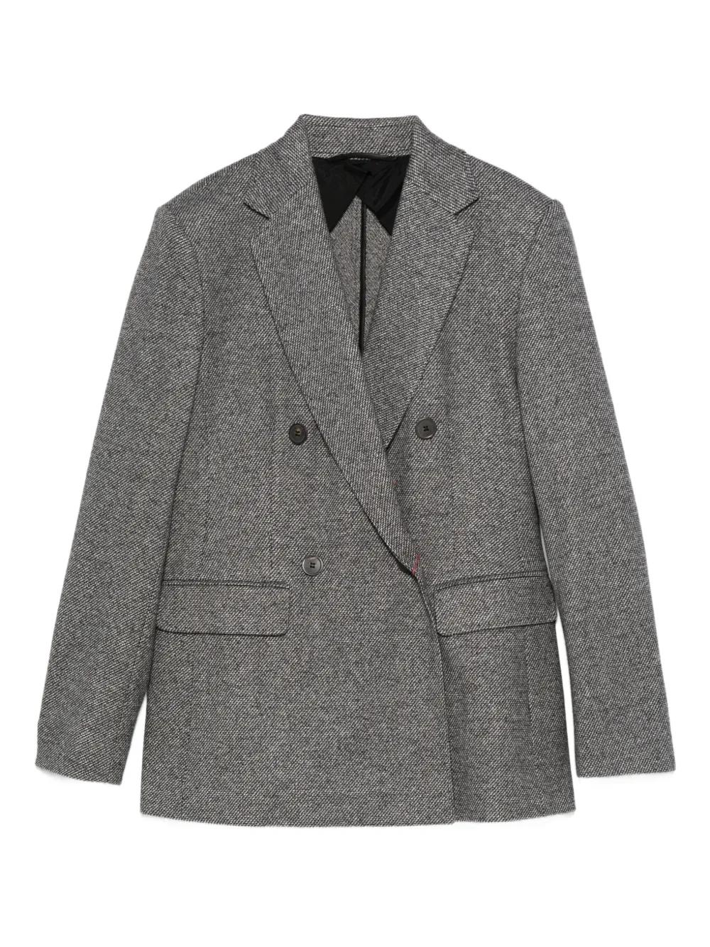 grey notched lapels double-breasted button fastening front flap pockets long sleeves