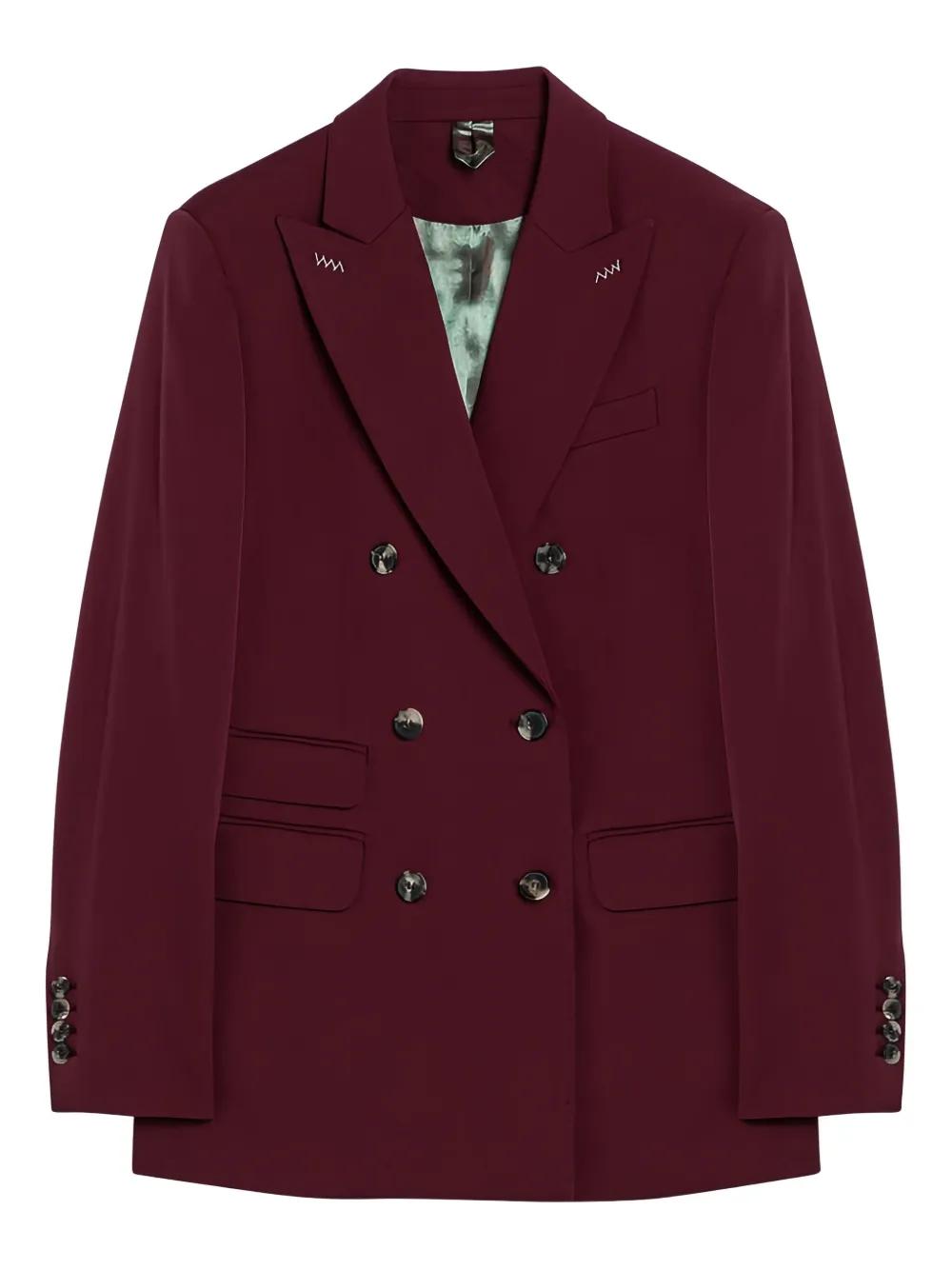 bordeaux red front button fastening front flap pockets chest welt pocket buttoned cuffs