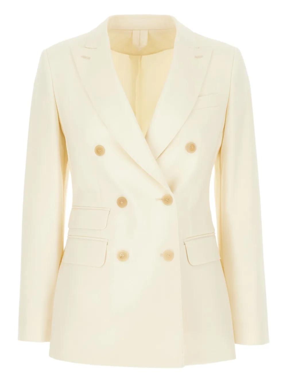 ivory white front flap pockets buttoned-cuff sleeves English rear vents