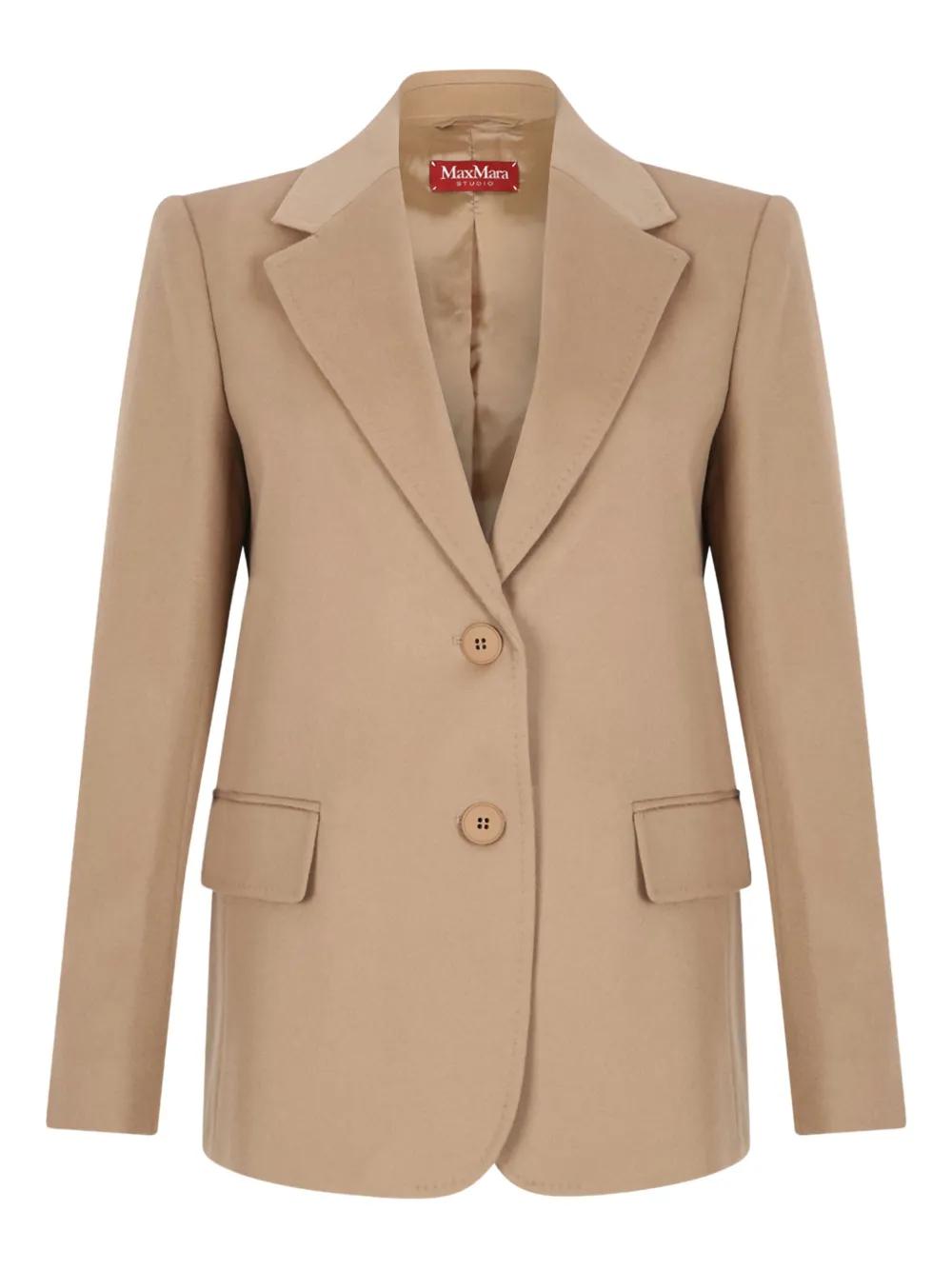 camel notched lapels front button fastening front flap pockets long sleeves straight hem