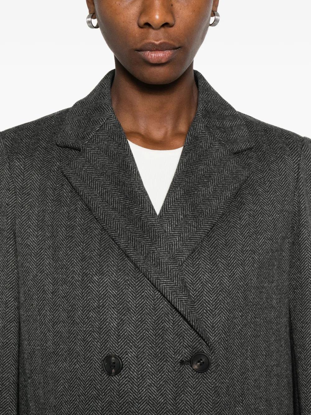 grey herringbone pattern double-breasted fastening notched lapel flap pockets long sleeves
