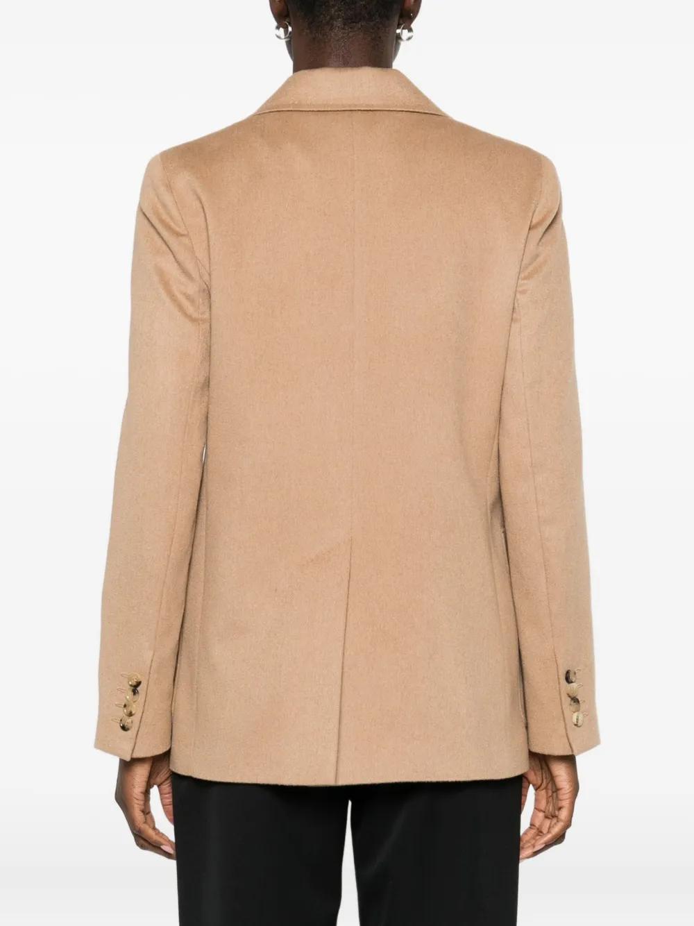 camel brown side patch pockets front button fastening notched lapels long sleeves
