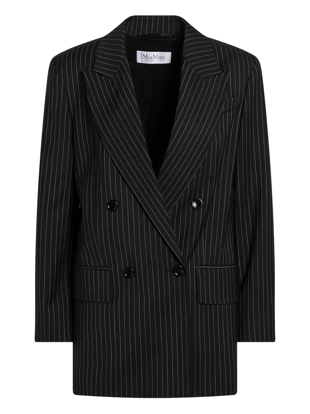 Max Mara striped-pattern double-breasted blazer - Black