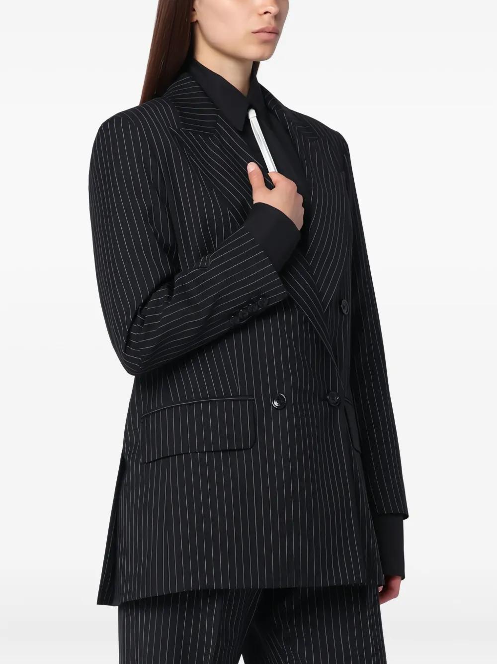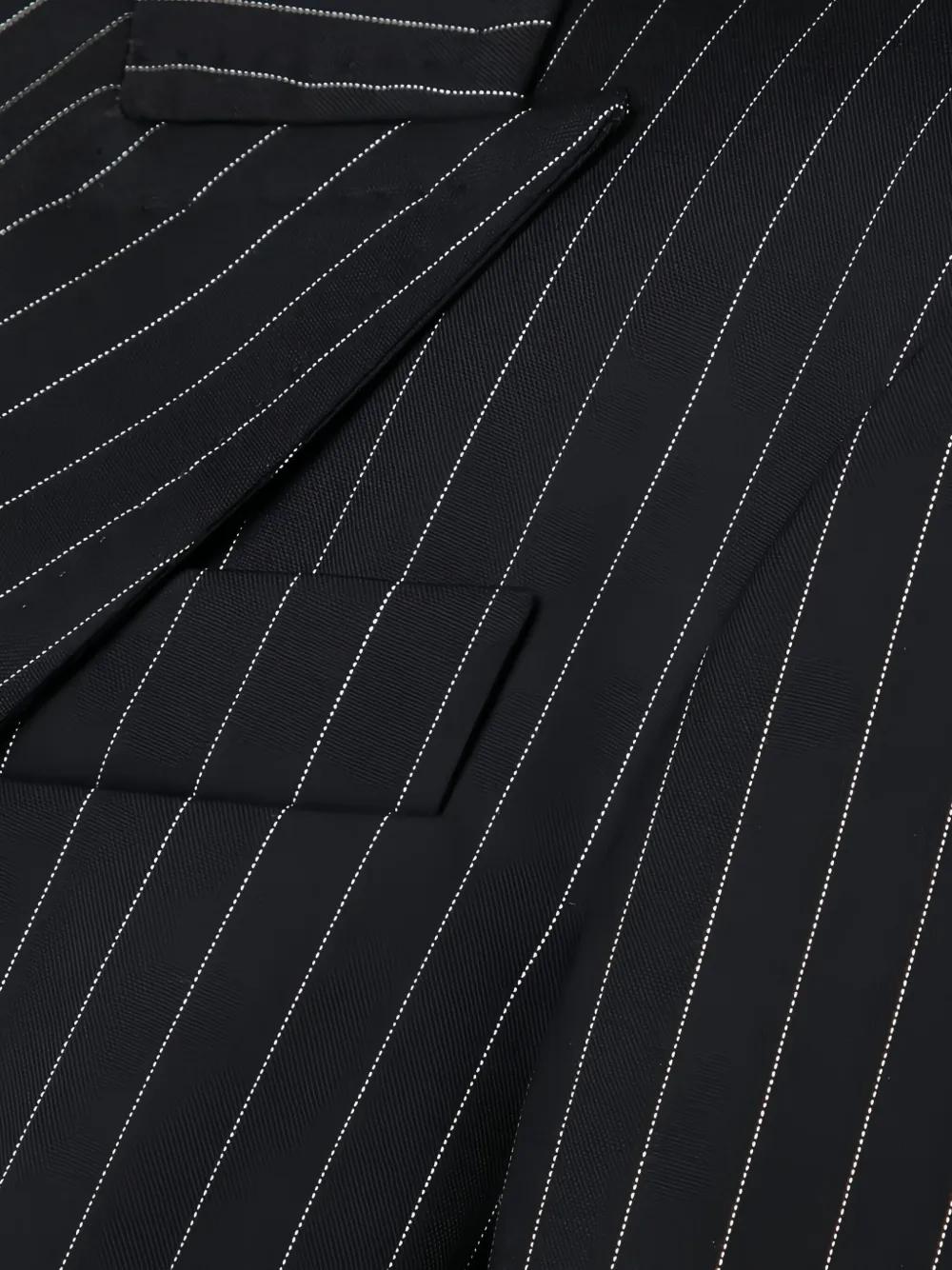 black striped pattern double-breasted button fastening peak lapels long sleeves welt pockets