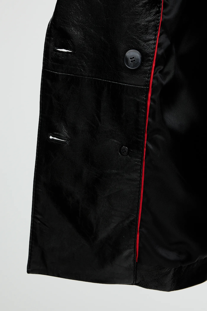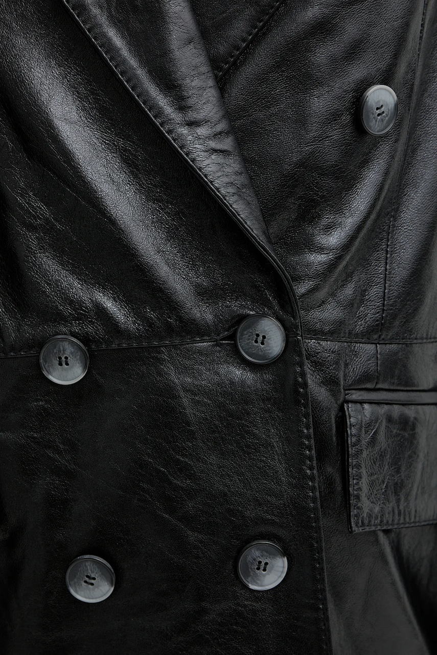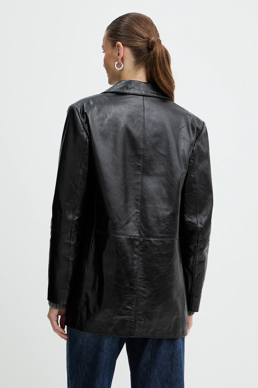 MAX&Co. marynarka skórzana kolor czarny dwurzędowa gładka 2526446053200