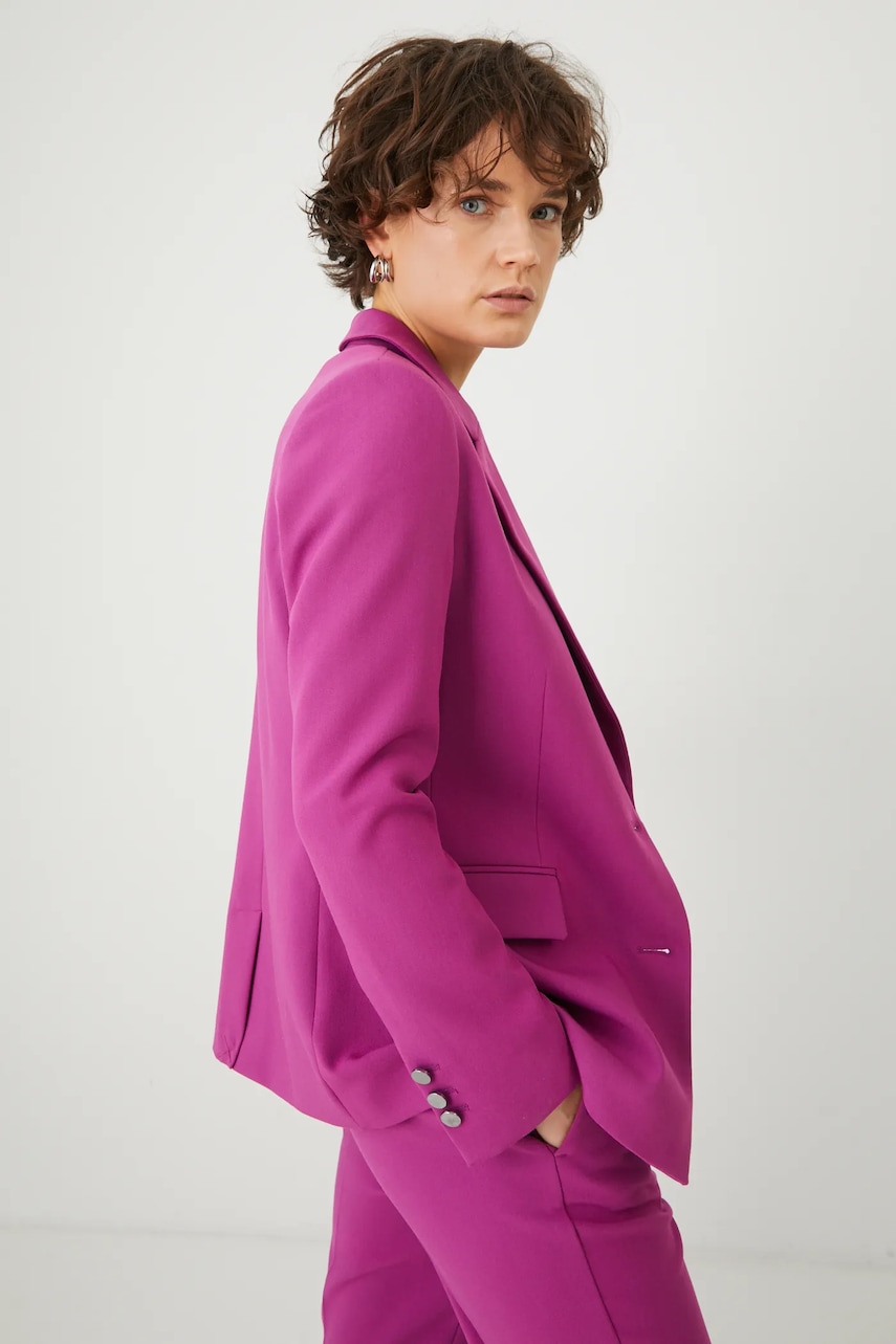 Medicine marynarka damska kolor różowy jednorzędowa gładka