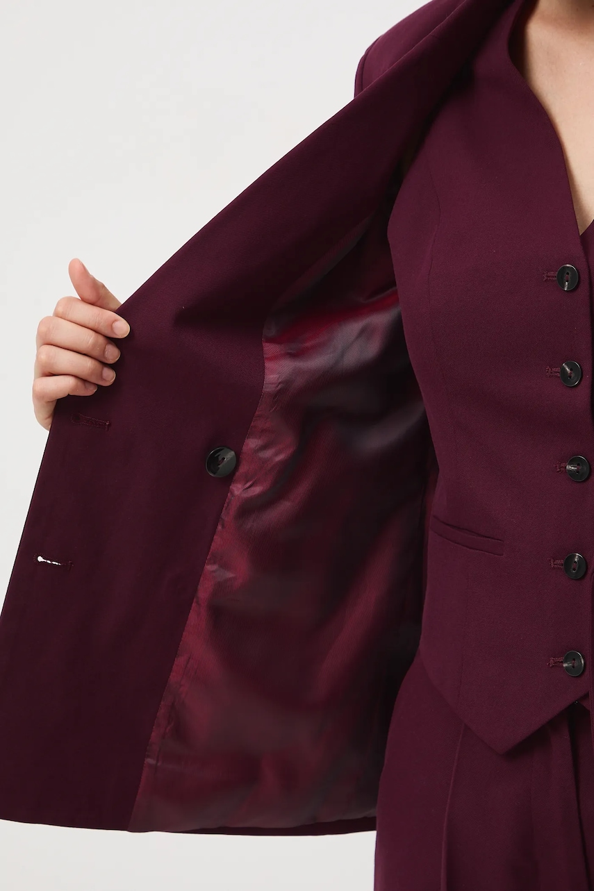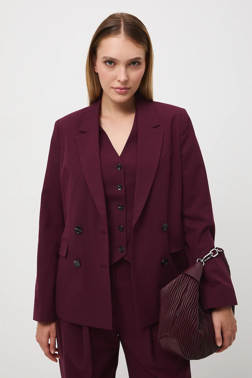 Medicine marynarka dwurzędowa damska kolor bordowy dwurzędowa gładka