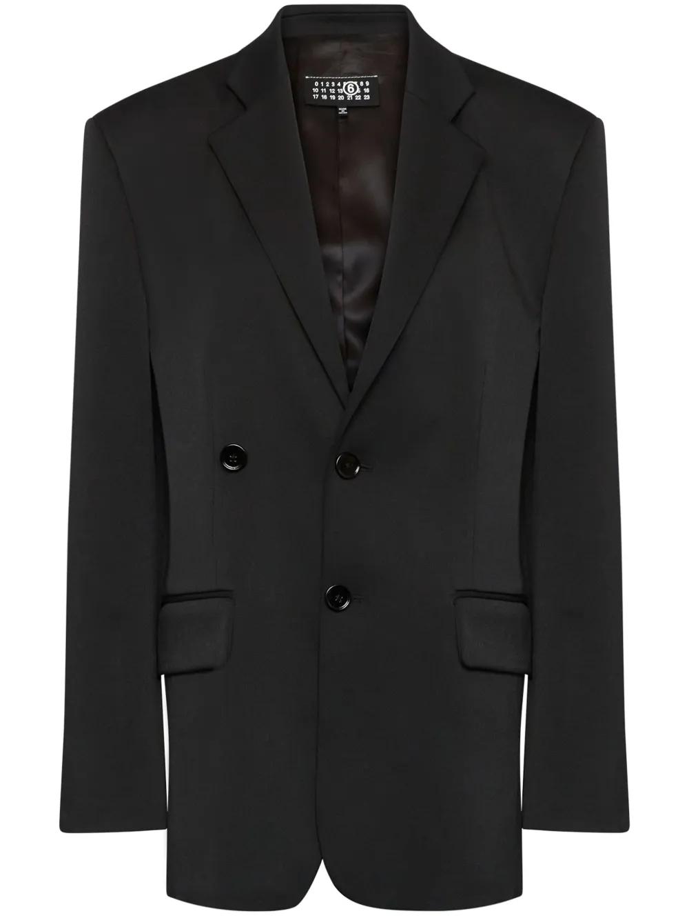 black notched lapels front button fastening two front flap pockets long sleeves buttoned-cuff sleeves straight hem