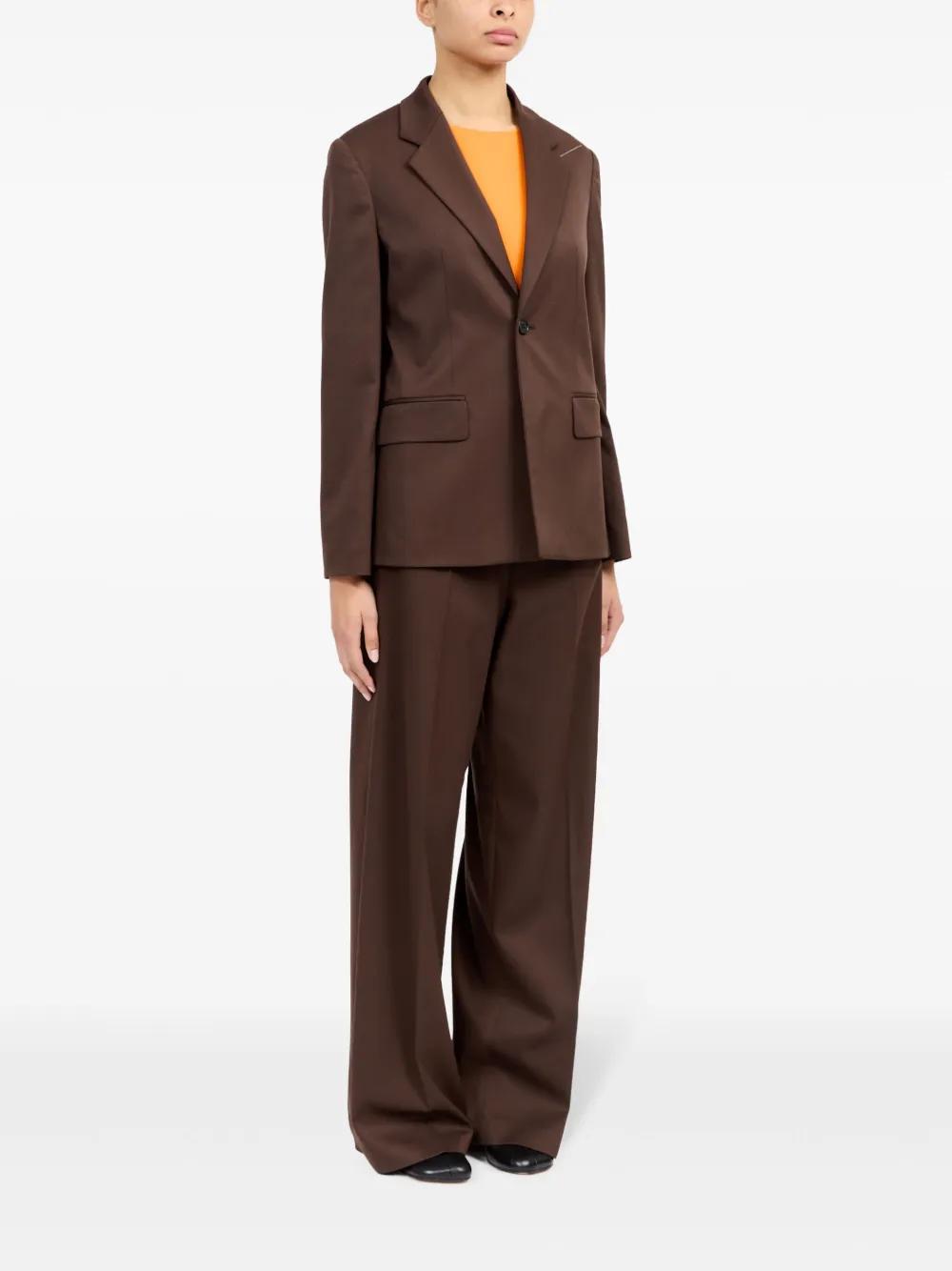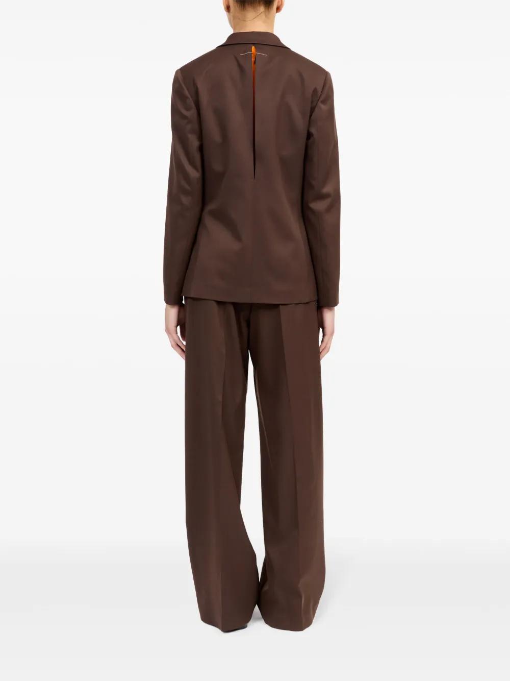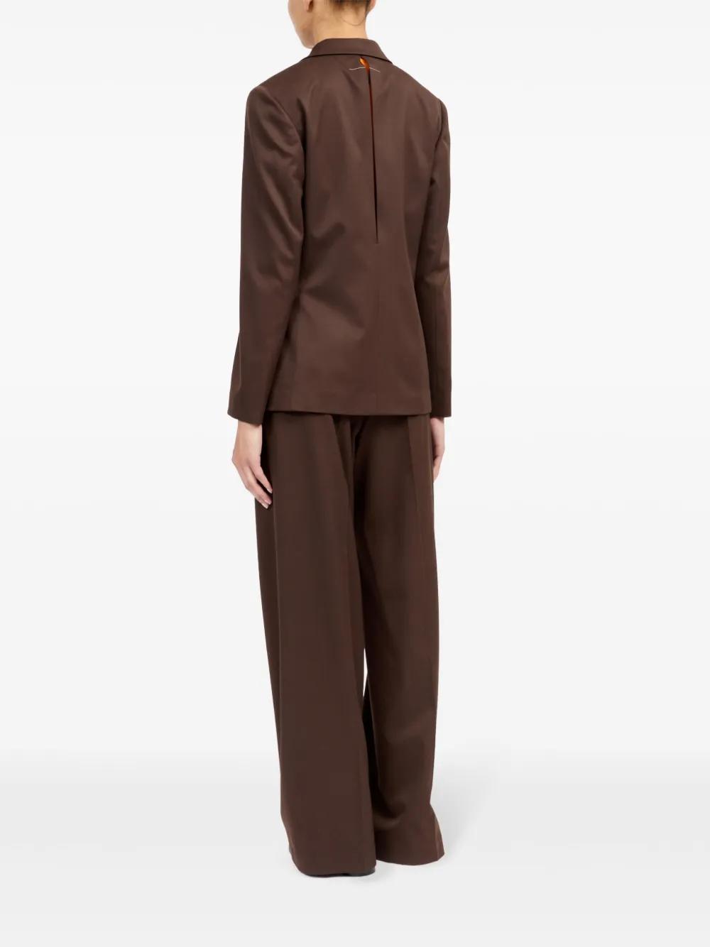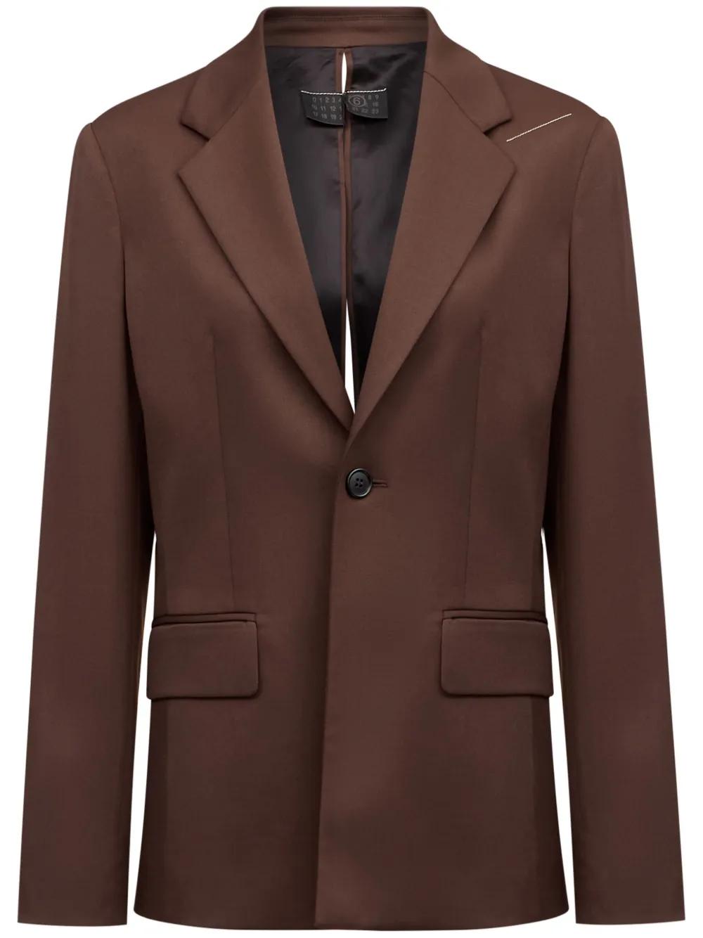 chocolate brown front button fastening notched lapels signature single-stitch logo long sleeves two front flap pockets cut-out detailing straight hem