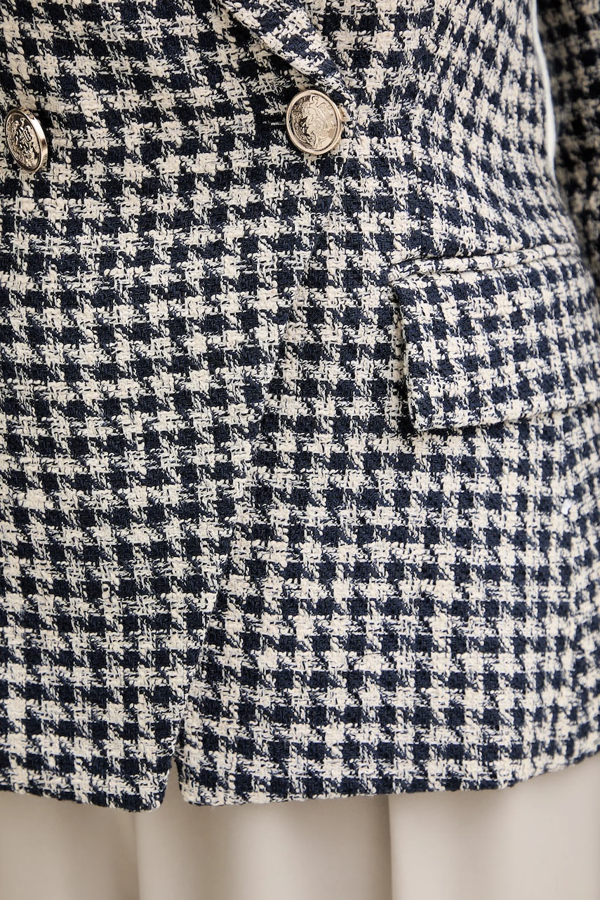 - Prosty, nie blokujący ruchów fason. - Wygodne zapięcie na guziki ułatwia zakładanie i zdejmowanie. - Klasyczne klapy. - W ramiona wszyte poduszki. - Wsuwana kieszonka na piersi. - Model z kieszeniami, ozdobionymi patkami. - Dodatkowa warstwa materiału w postaci podszewki. - Długość rękawa: 63 cm. - Długość: 63 cm. - Szerokość pod pachami: 45 cm. - Szerokość w ramionach: 37 cm. - Wymiary podane dla rozmiaru: 36.