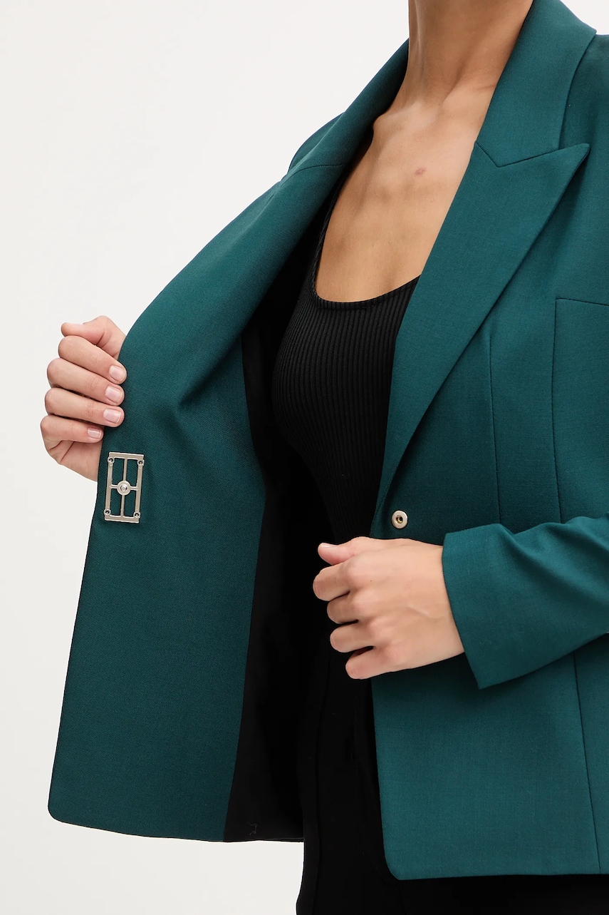 Patrizia Pepe marynarka z dodatkiem wełny kolor zielony jednorzędowa gładka 2S1537 A475