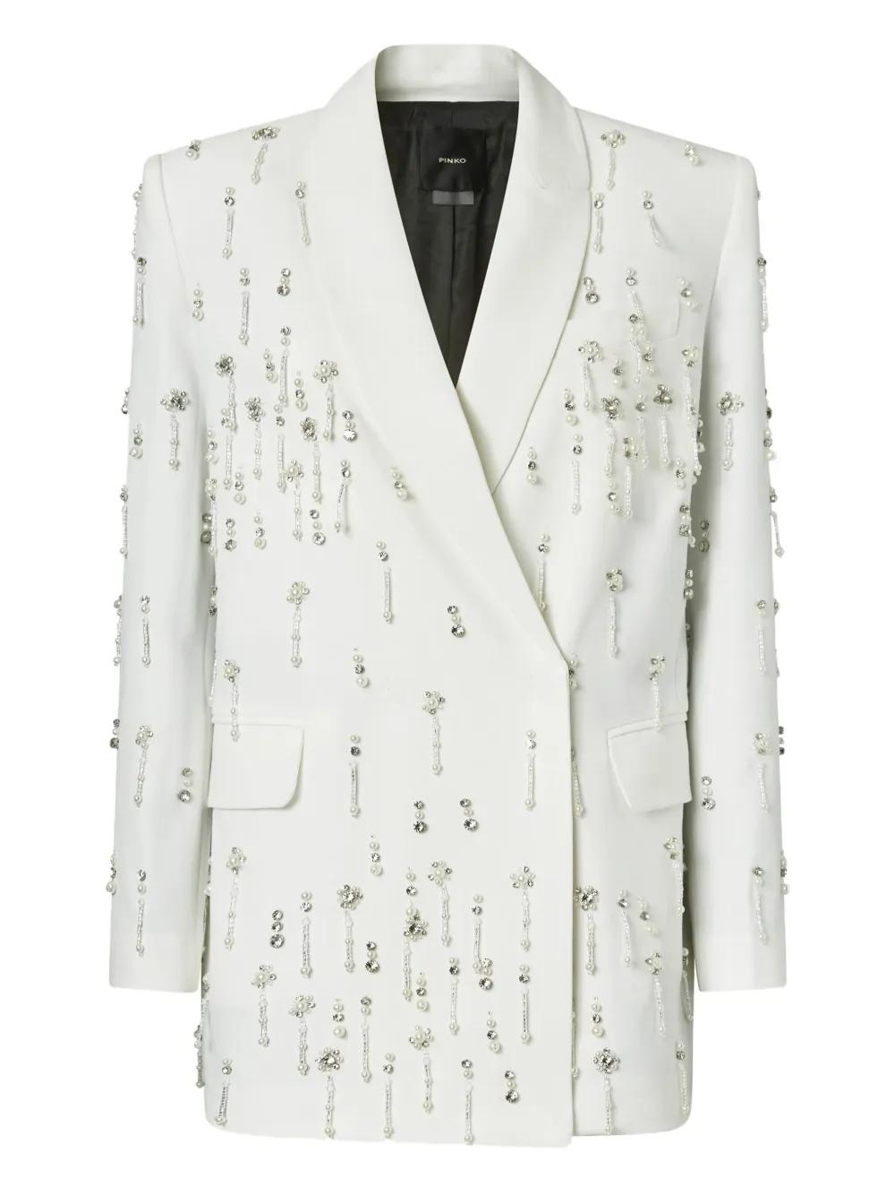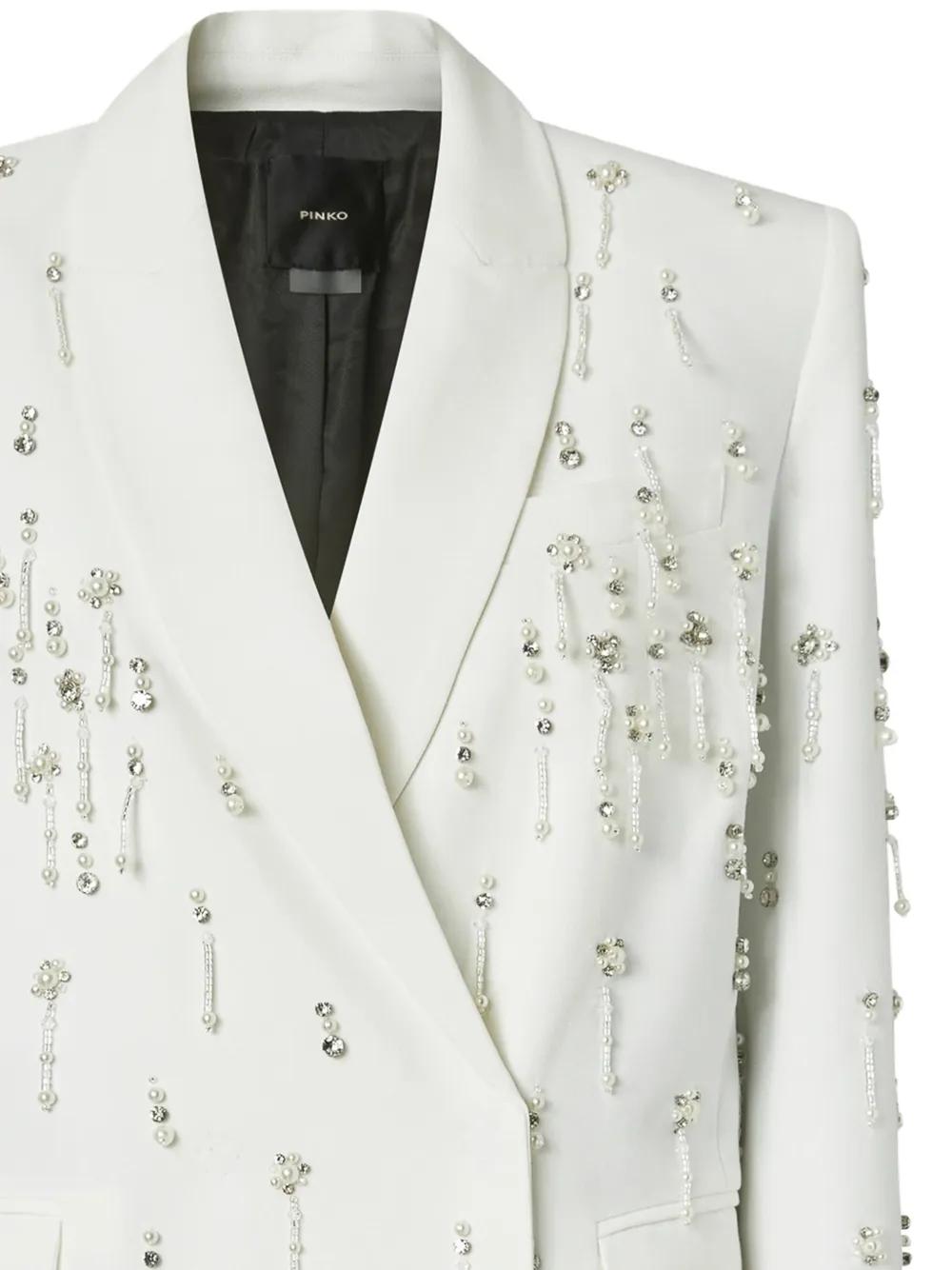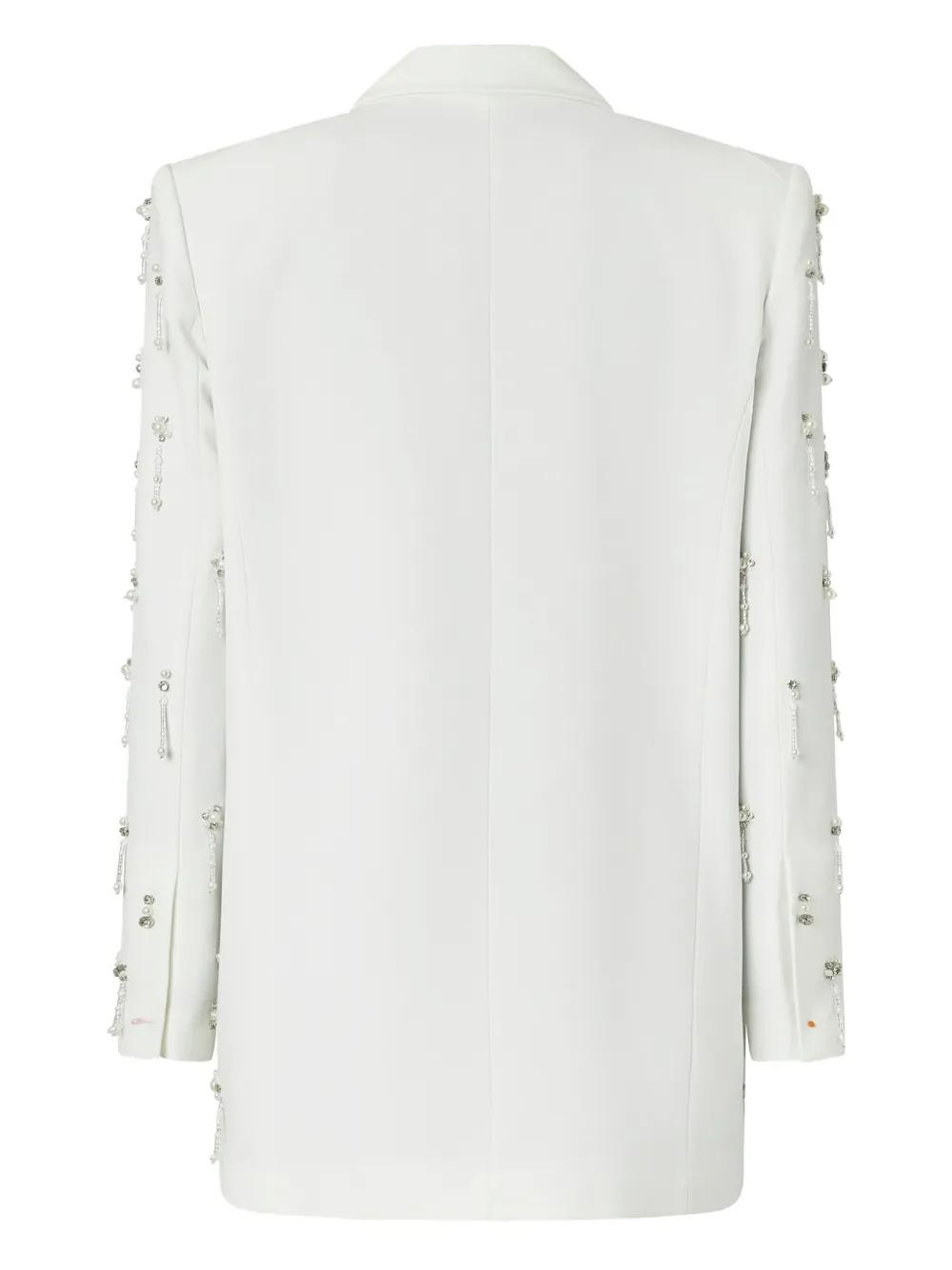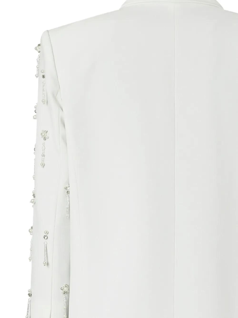 white double-breasted « crystal embellishments long sleeves crystal-embellished cuffs straight hemline