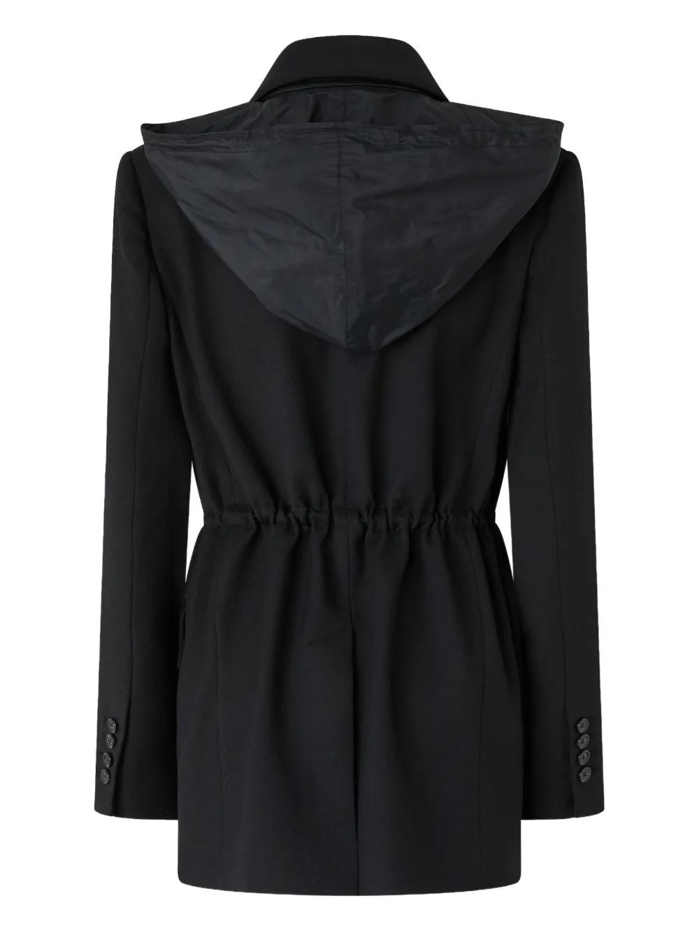 black side drawstrings buttoned up notched lapels