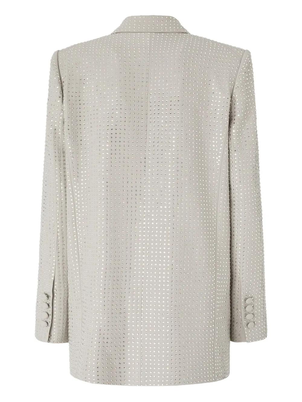 grey rhinestone embellishment shawl collar flap welt pockets four-button cuffs fabric-covered buttons