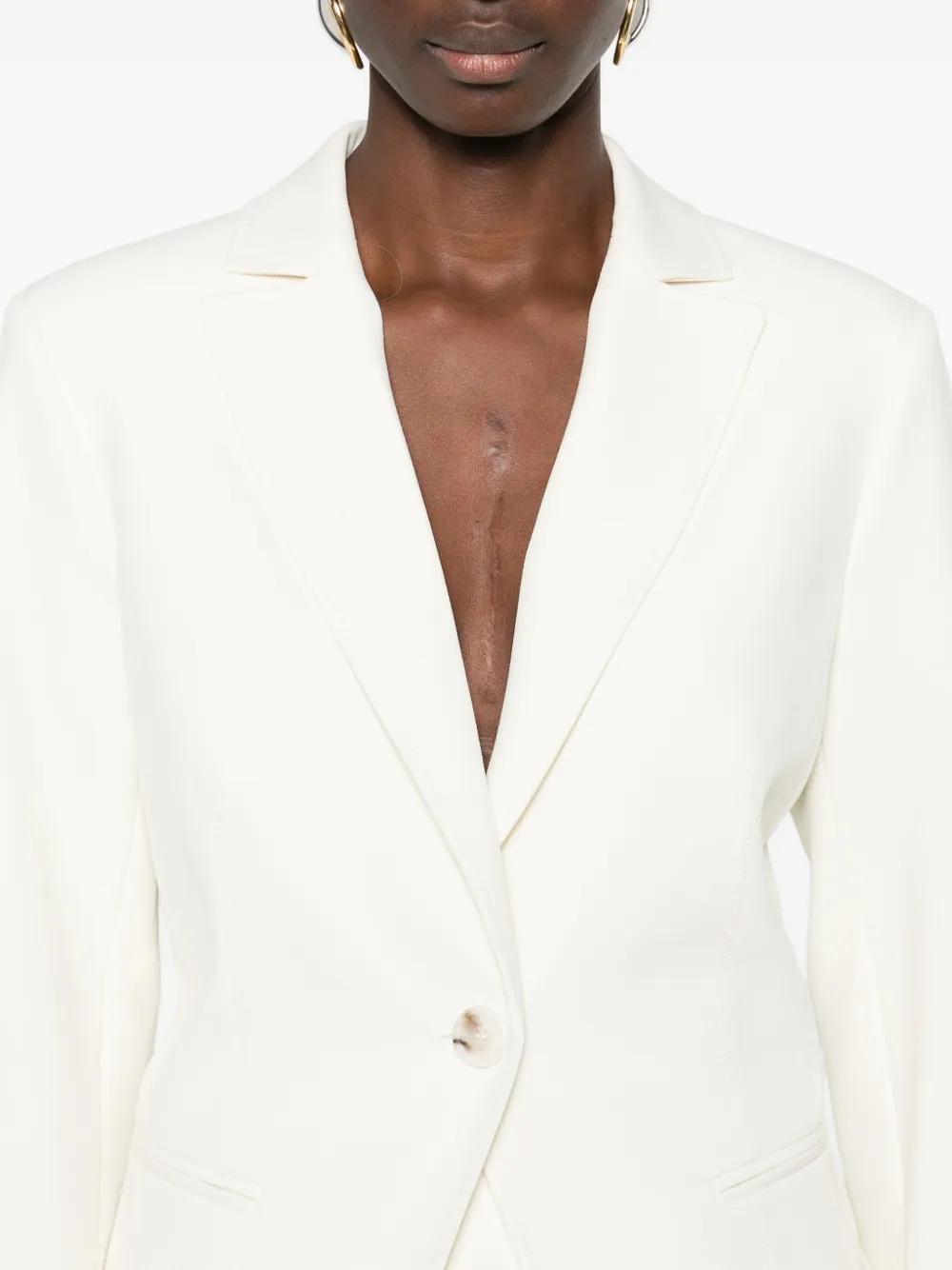 white notched lapels single-button closure front pockets long sleeves straight hem