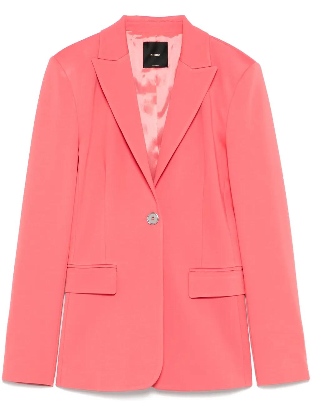 coral pink front button fastening two front flap pockets buttoned cuffs shoulder pads